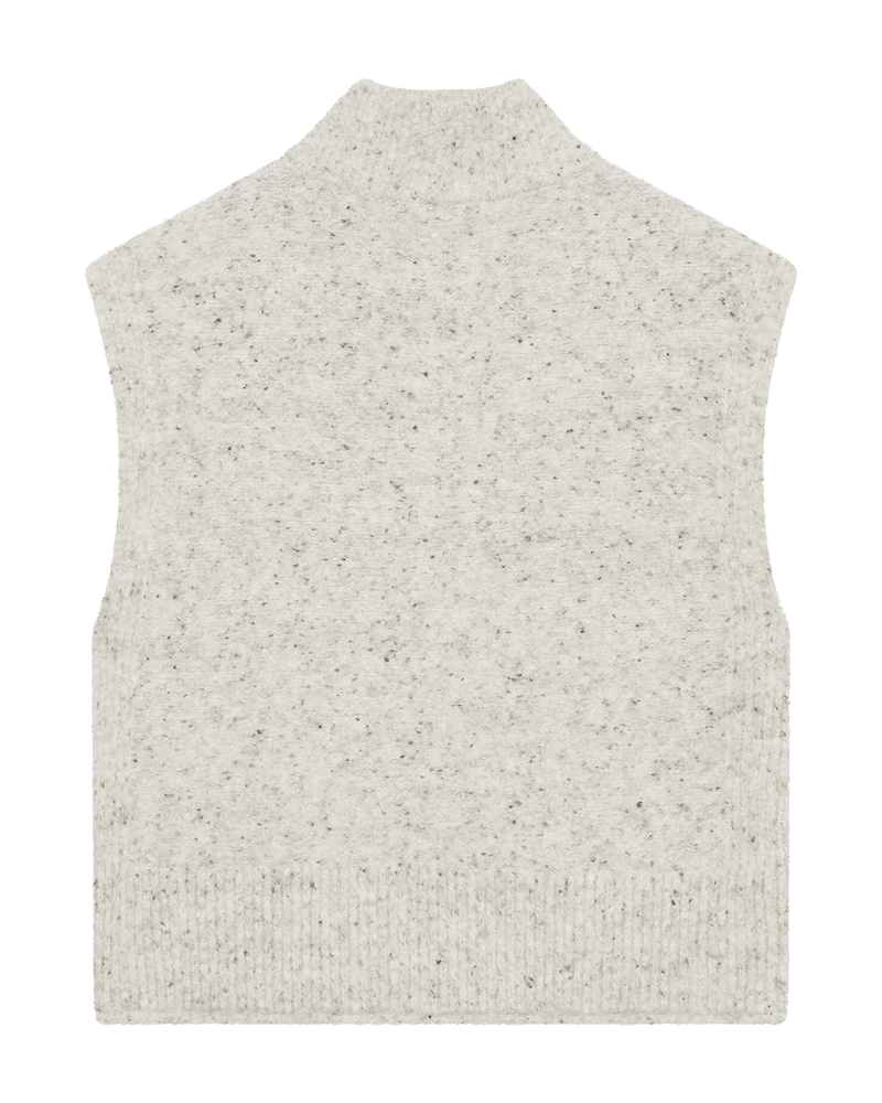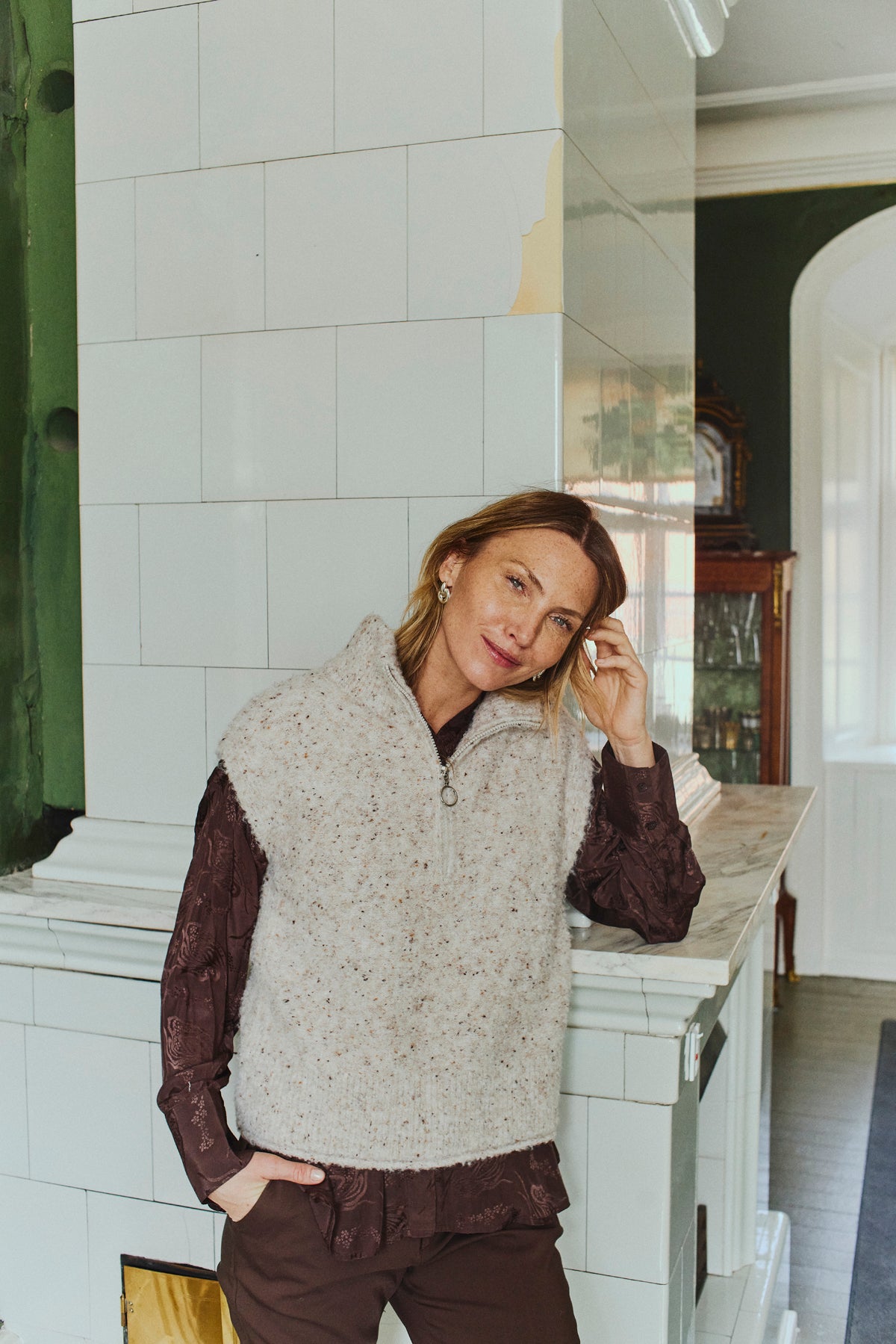 Æðislegt prjóna vesti frá Free/Quent. Sniðugt undir jakka. 56% Polyester (endurunninn) 36% Polyester 5% Ull 3% Teygja