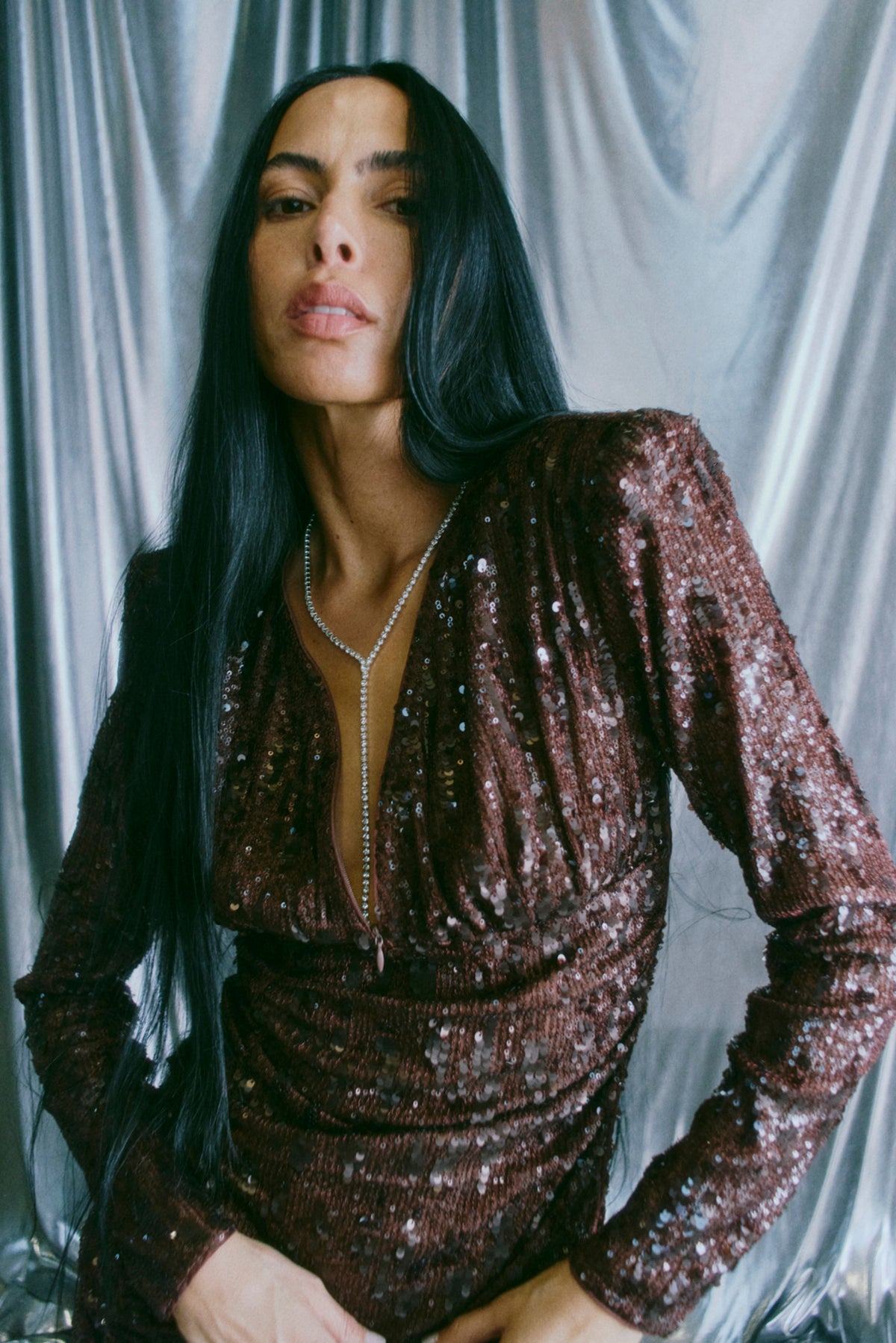 Gjörsamlega geggjaður pallíettukjóll frá CopenhagenMuse. 95%polyester 5%teygja