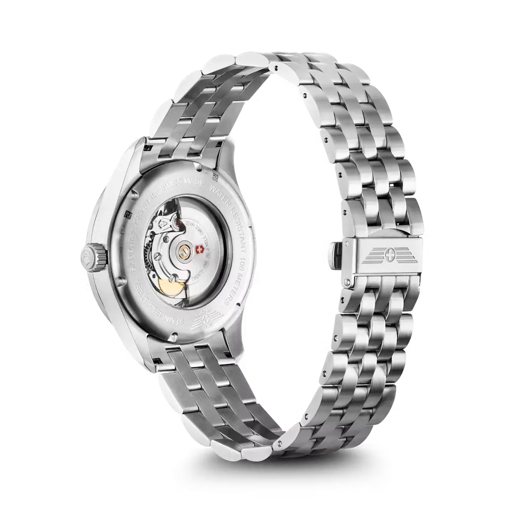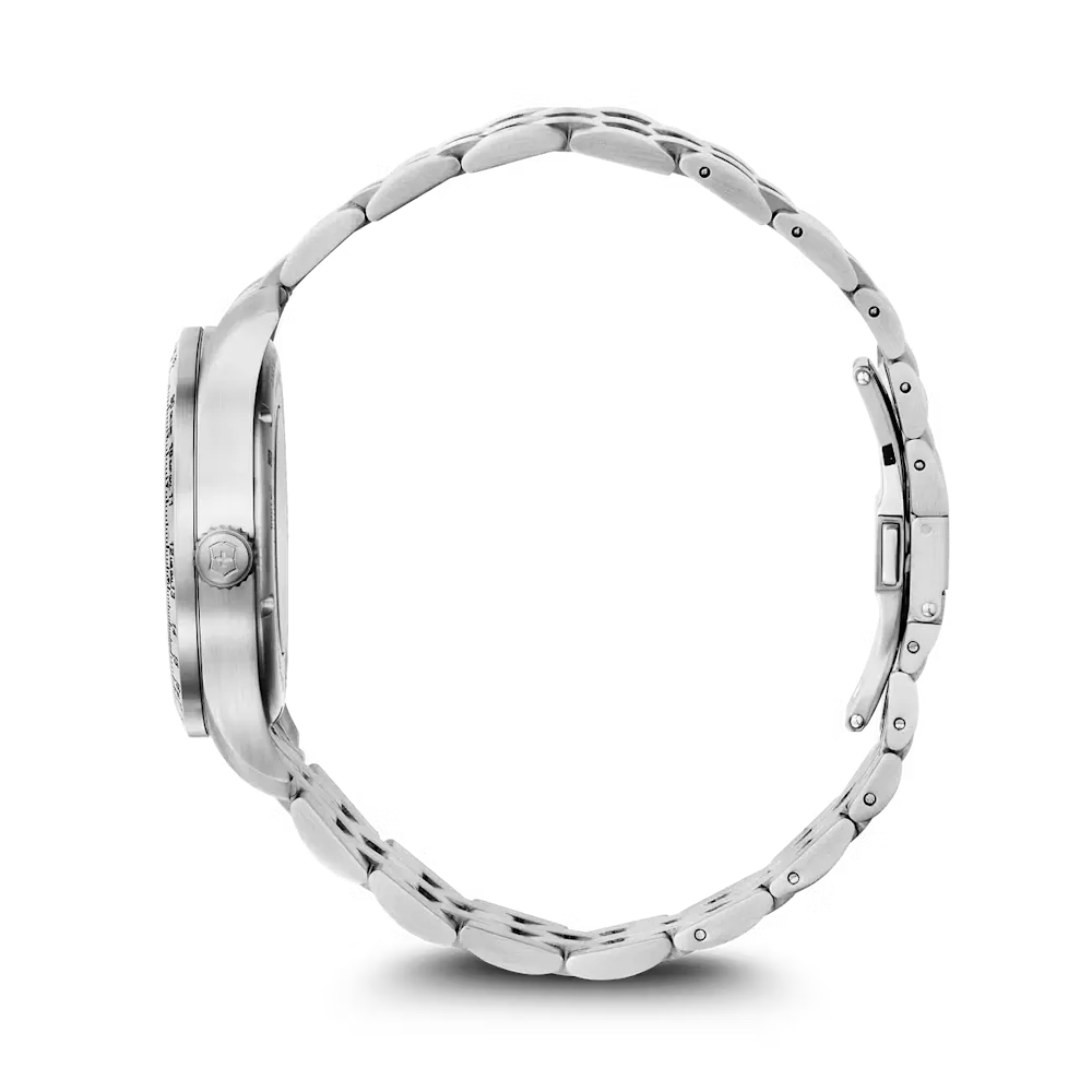 Úrkassi: 42mm – stál Úrverk: Sjálftrekkt – svissneskt Vatnsvörn: 100M Skífa: Svört – áfestar tölur og strik – dagsetning hjá kl 6 – vísar Gler: Safírgler – speglunarvörn Keðja: Stál – ... Sjá nánar