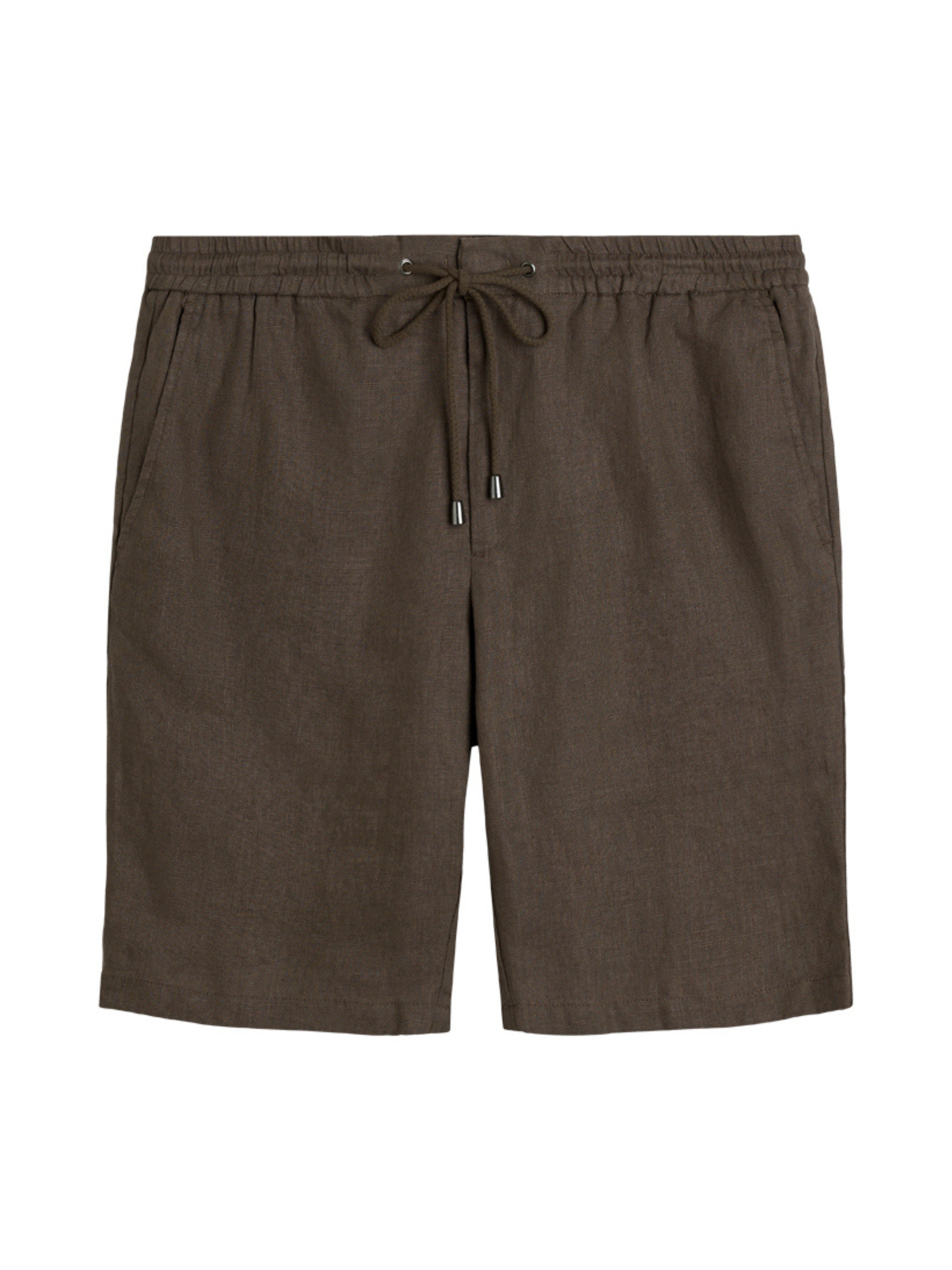 Elasticated drawstring waistband Front side pockets Regular fit Soft pure linen softened for a relax feel