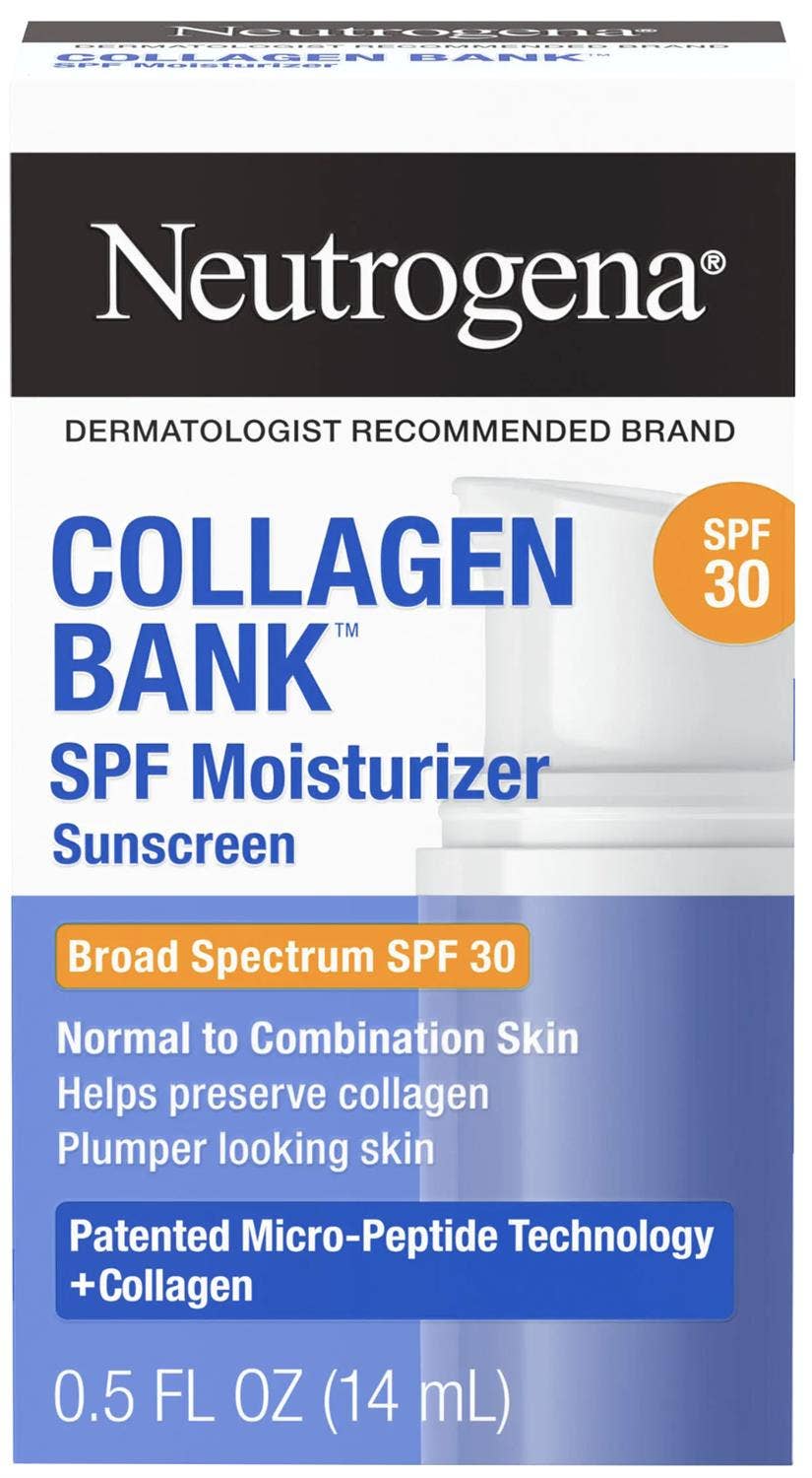 Neutrogena CollagenBank Moisturizer SPF30 er létt rakakrem sem varðveitir kollagen, vinnur gegn fyrstu öldrunarmerkjum og gefur húðinni raka, sléttari áferð og stinnari ásýnd. Inniheldur spf30