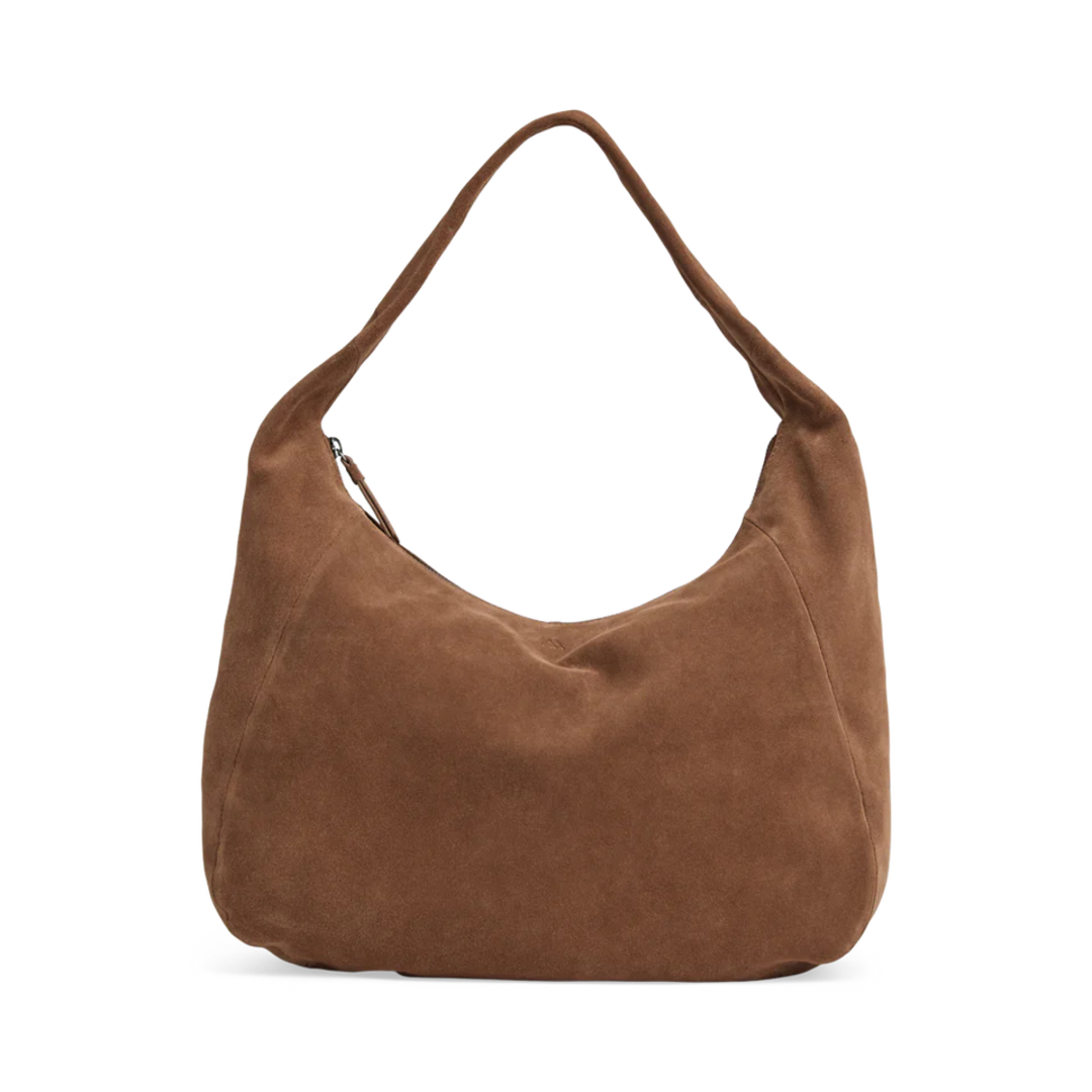 Stílhrein og hagnýt crossbody/axlartaska úr mjúku rúskinni í hlýjum brúnkum lit, fullkomin fyrir daglega notkun með plássi fyrir helstu nauðsynjar. | SamaraMBG Bag Suede Chestnut