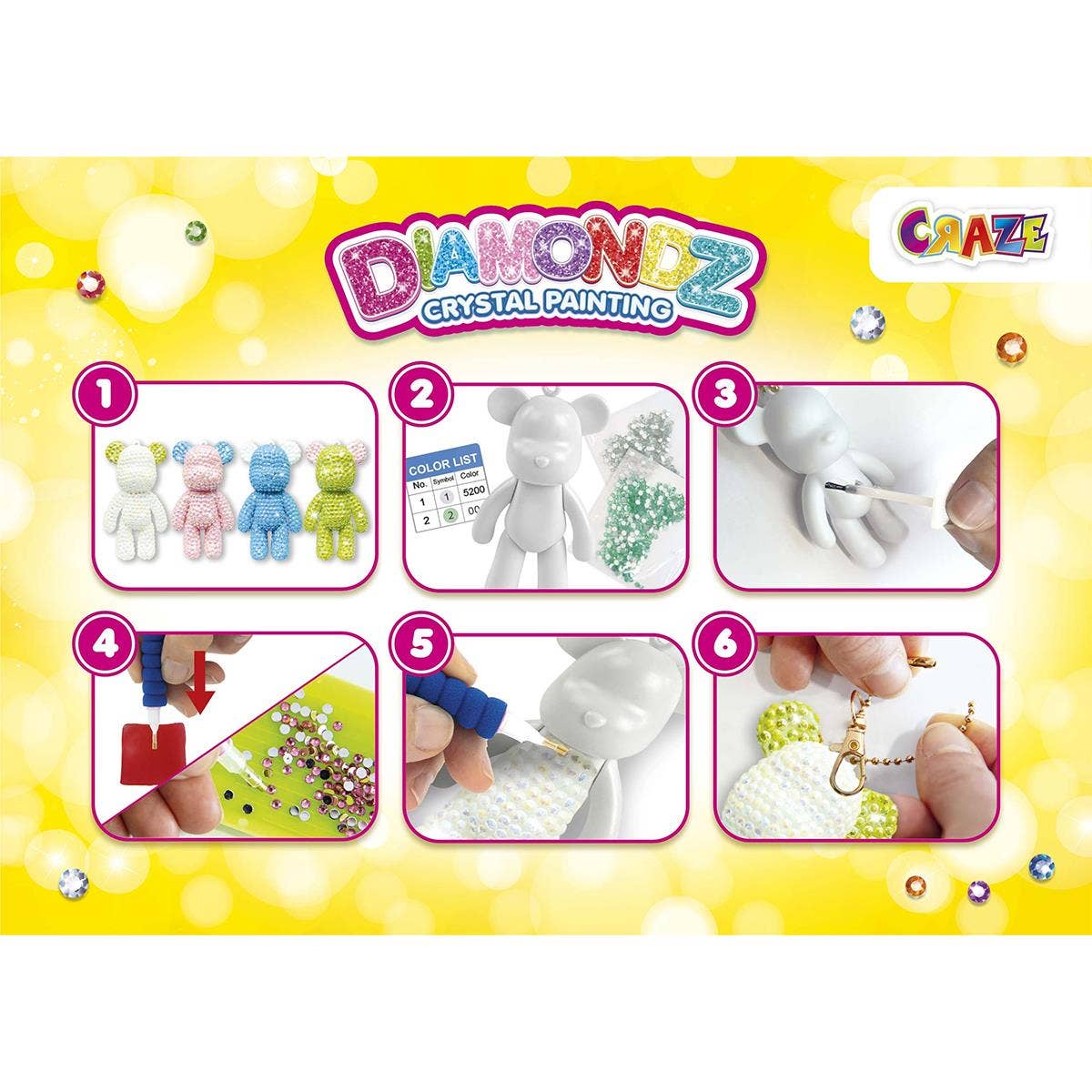 Skemmtilegt demantsperlusett til að föndra 3D bangsalyklakippu.