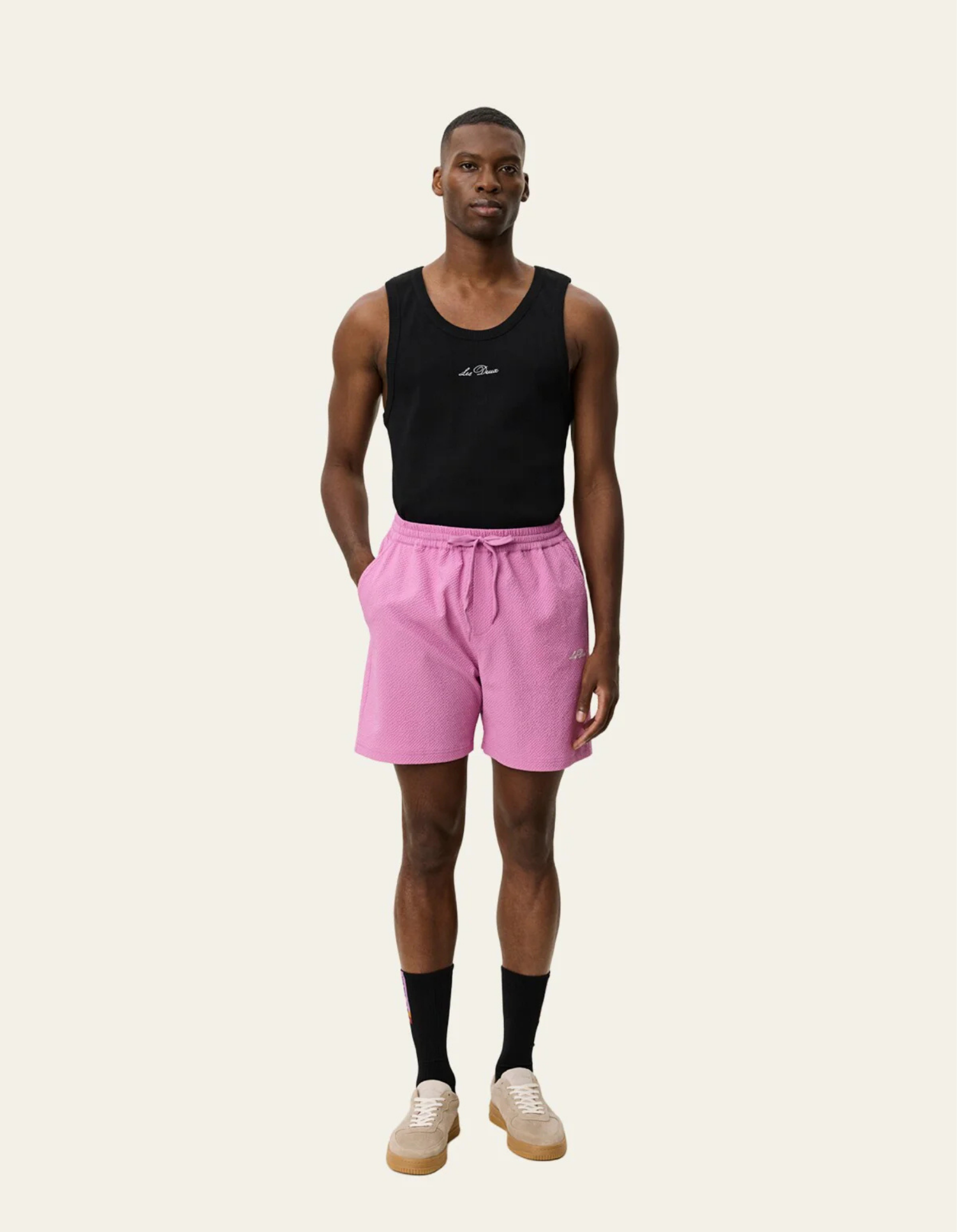 Lightweight swim shorts in textured seersucker. Designed with a comfortable drawstring waist and small embroidered detail at the front. 100% Polyester (Recycled) Seersucker texture Elastic ... Sjá nánar