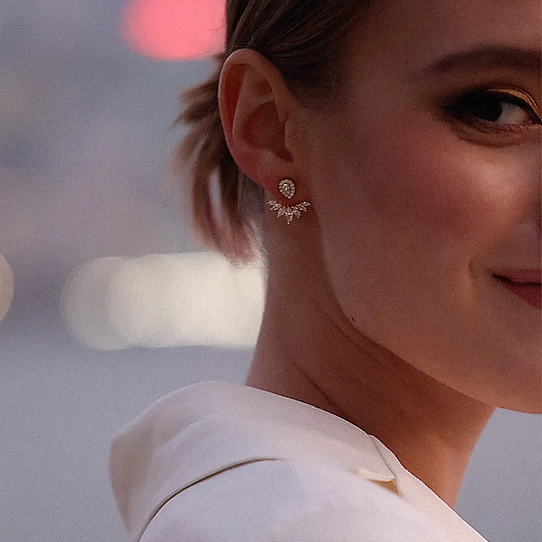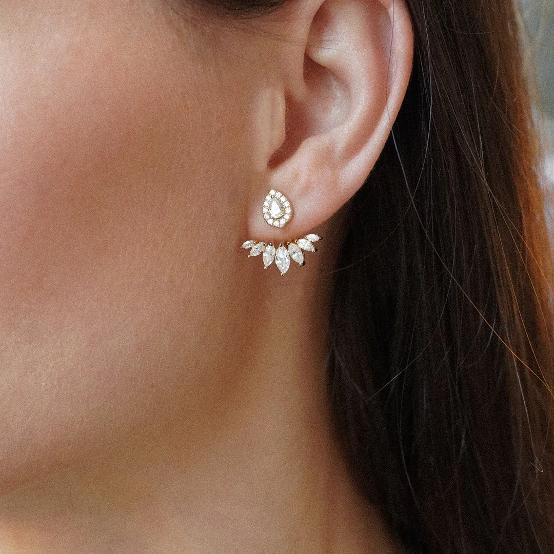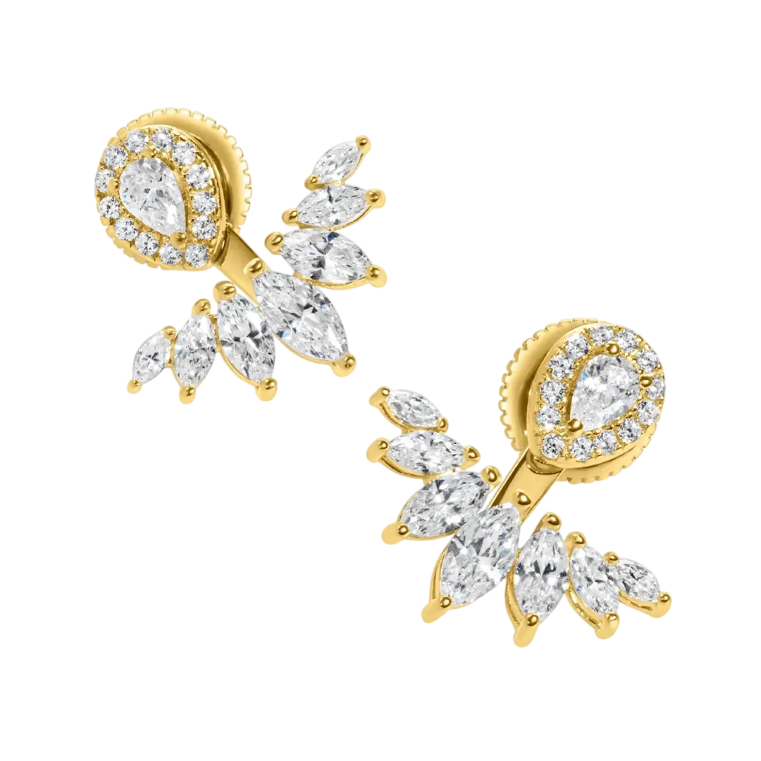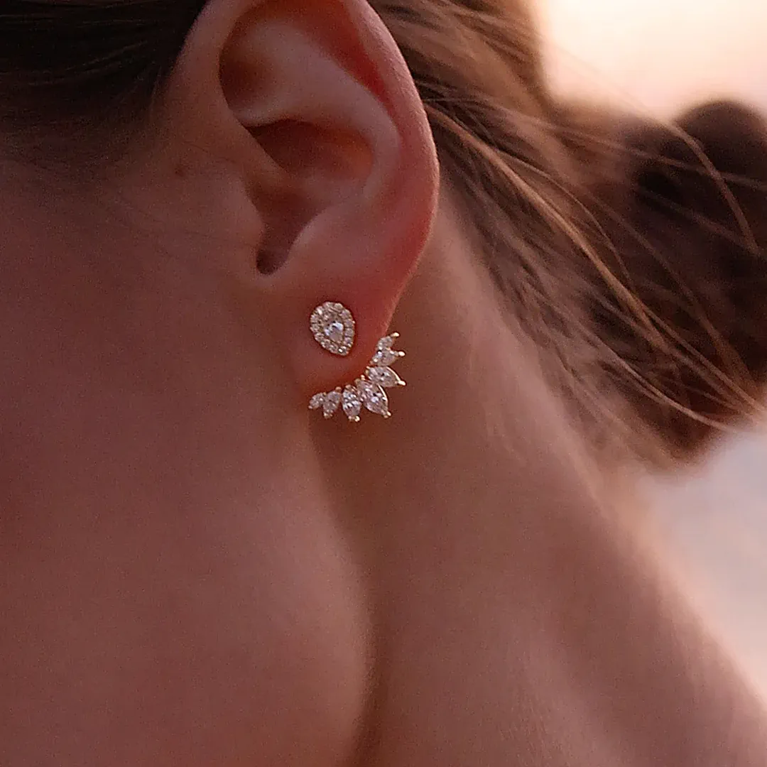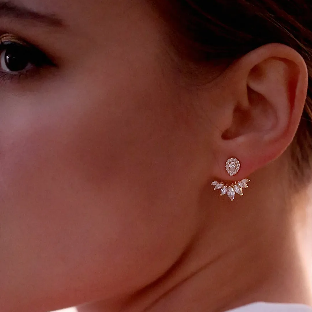 Glæsilegir eyrnalokkar sem hægt er að nota á tvo vegu, með eða án viðhengis. Efni eyrnalokka: Gullhjúpað silfur & zirkonia