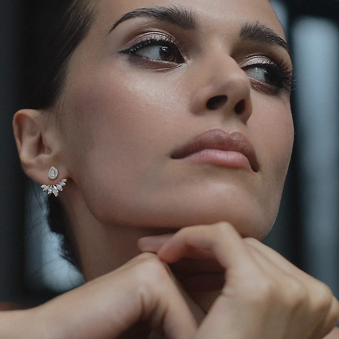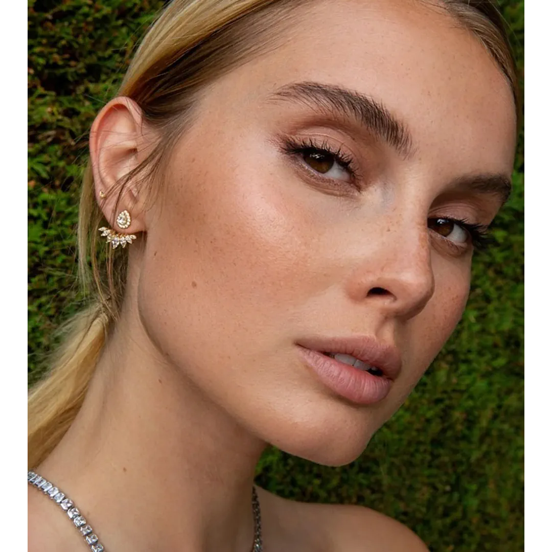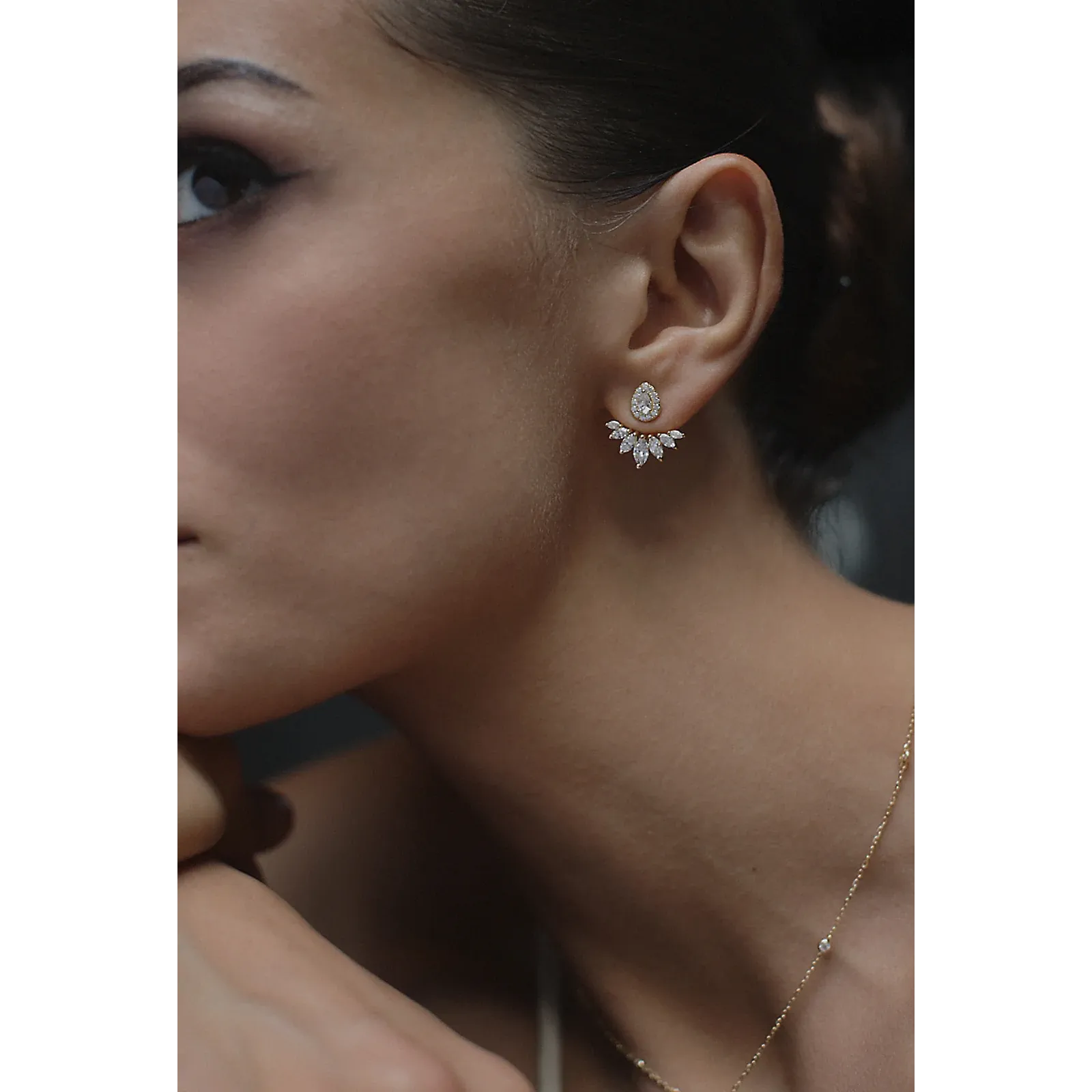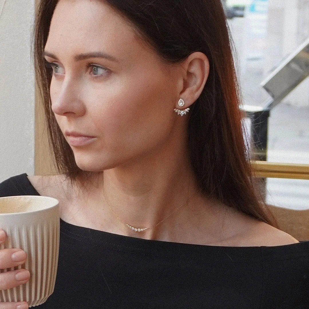 Glæsilegir eyrnalokkar sem hægt er að nota á tvo vegu, með eða án viðhengis. Efni eyrnalokka: Gullhjúpað silfur & zirkonia