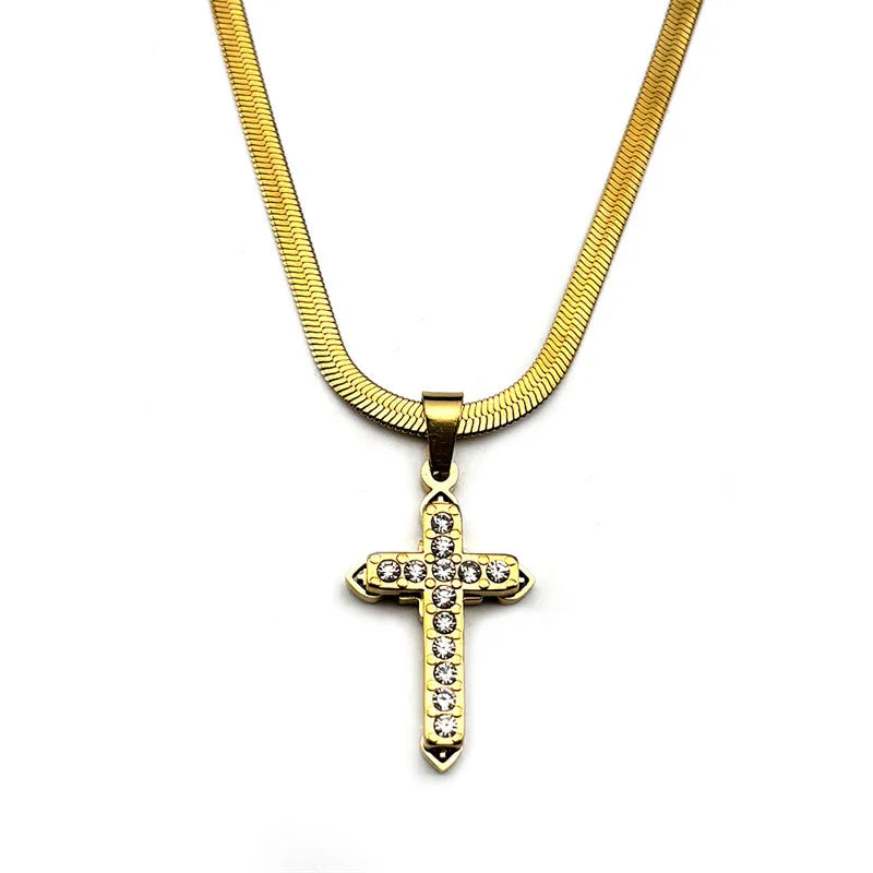 Kross Hálsmen með Sirkonsteinum og þykkri keðju