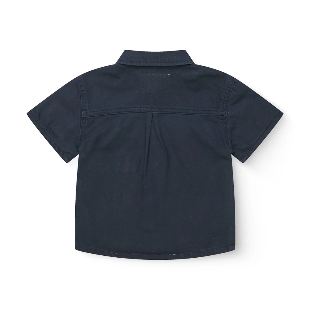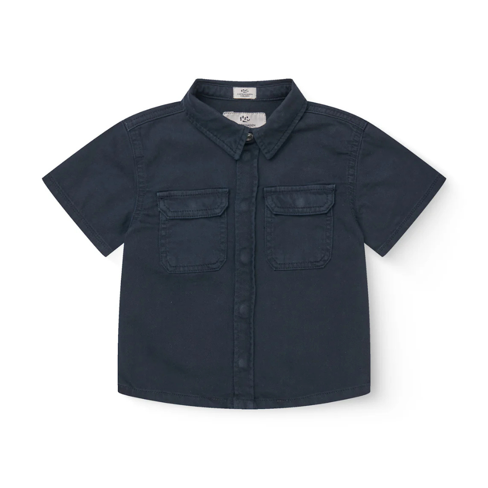 Dökk blá skyrta frá Copenhagen Colors með kraga og stuttum ermum. 100% bómul.