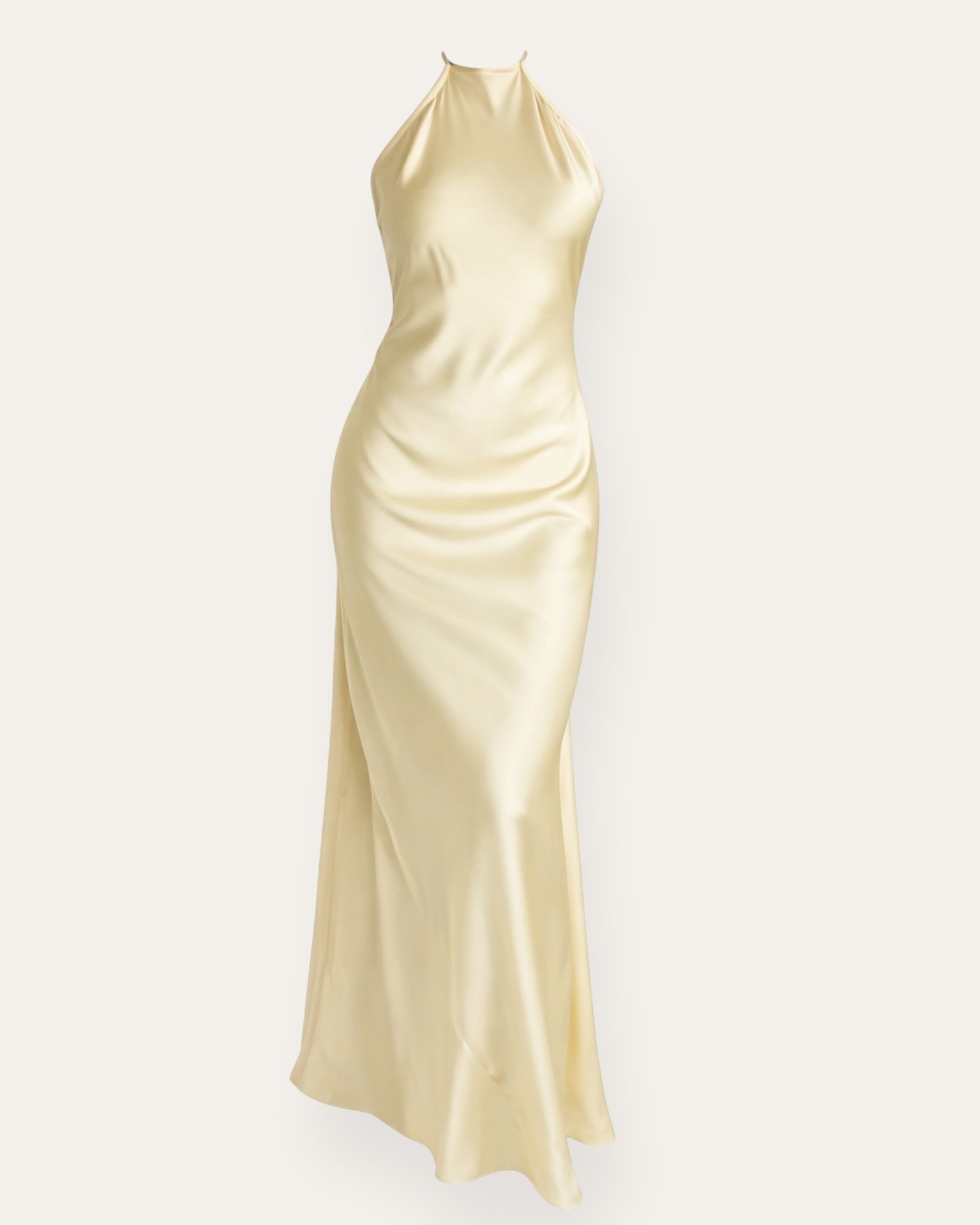Satin Halter Maxi Dress Ótrúlega fallegur satínkjóll sem gefur elegant en effortless look. Halter hálsmálið og mjúka satínefnið leggja fallega að líkamanum og skapa chic og kvenlegt snið. ... Sjá nánar