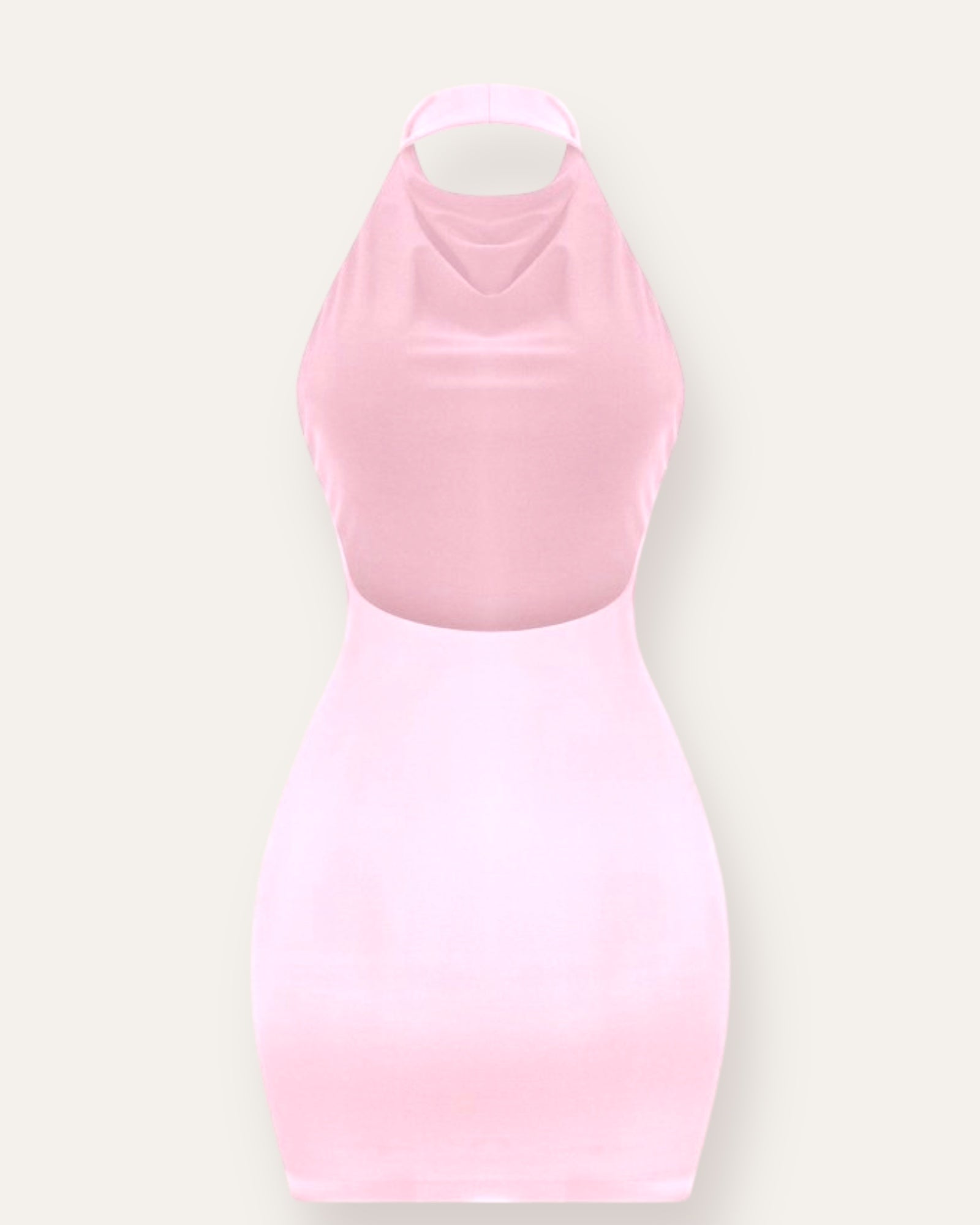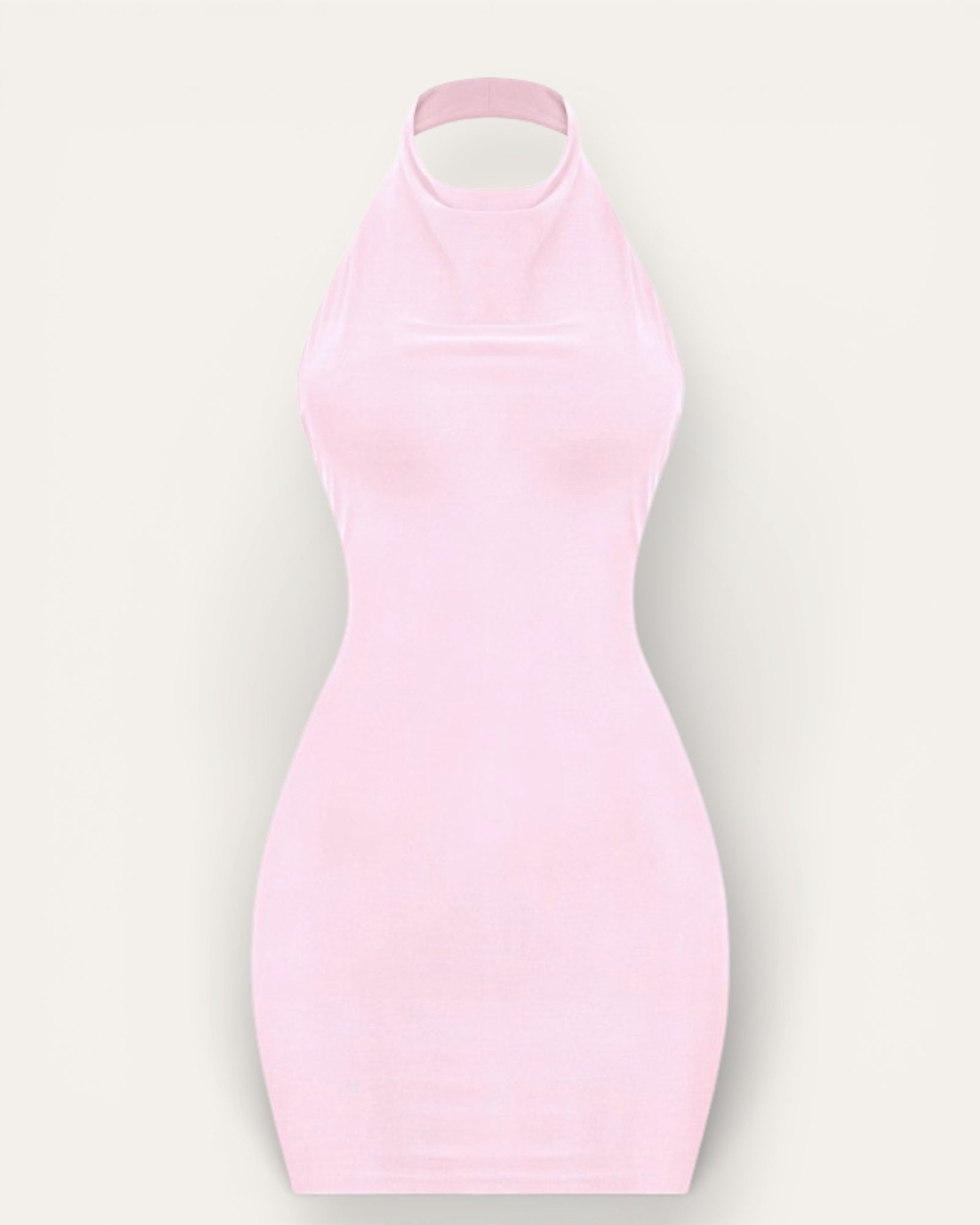 Blush Halter Mini Dress   Kvenlegur og fágaður halter mini kjóll í mjúkum bleikum tón. Kjóllinn er aðsniðinn og mótar líkamann fallega, á meðan hálsmálið með mjúkri draperingu gefur honum ... Sjá nánar