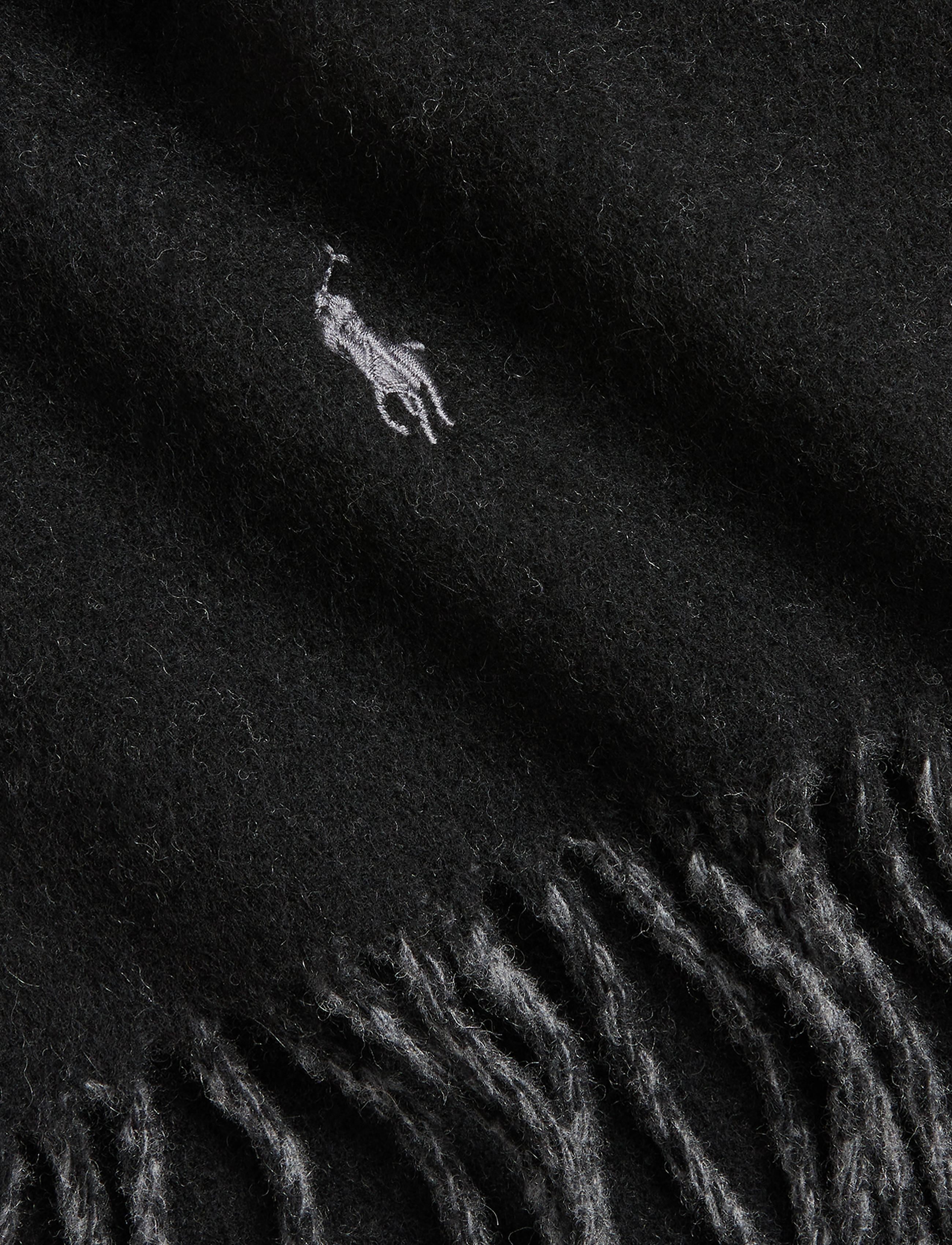 Crafted from a soft wool blend, this Italian-made scarf features a complementary hue at the reverse. 72" L x 10" W. Rope-fringe ends. Signature Pony embroidered at one end. 80% wool, 20% ... Sjá nánar