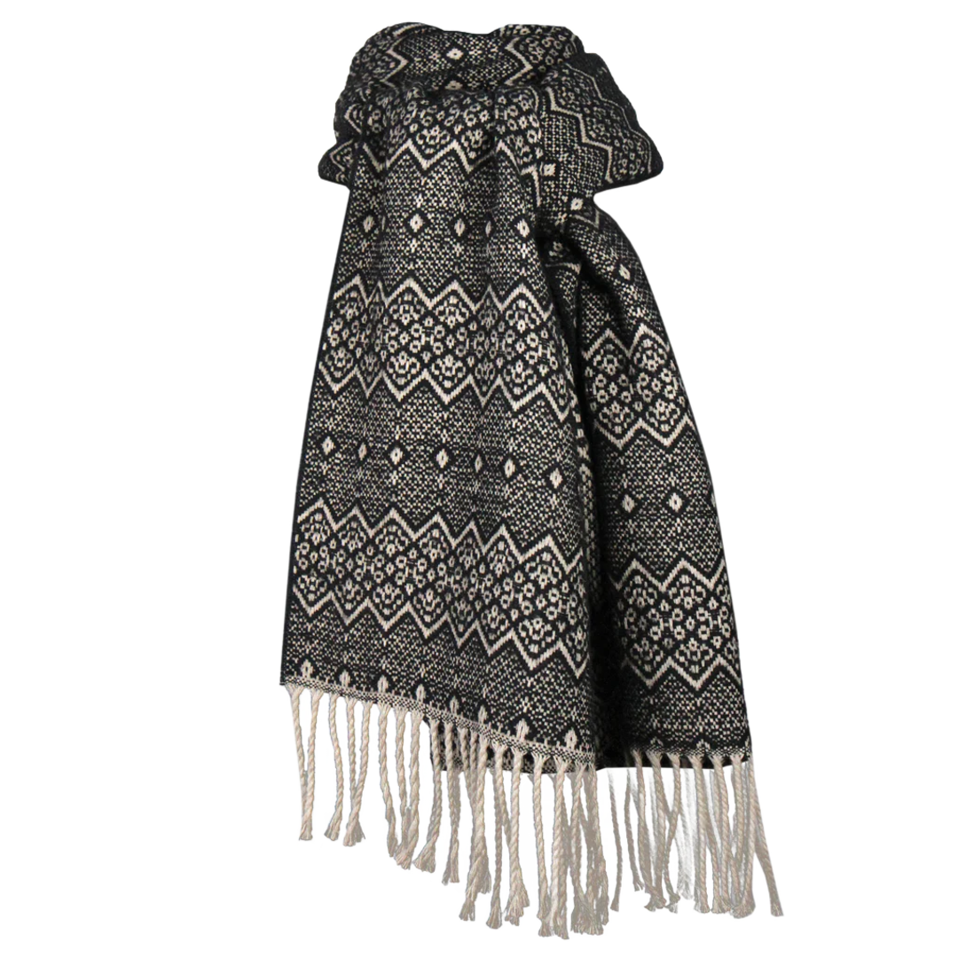 Hlýr og mjúkur ofinn trefill. 50% merino ull, 50% endurunnin bómull.Stærð: ca. 30 cm x 170 cmUmhirða: Þurrhreinsun | Garðar trefill - Svartur