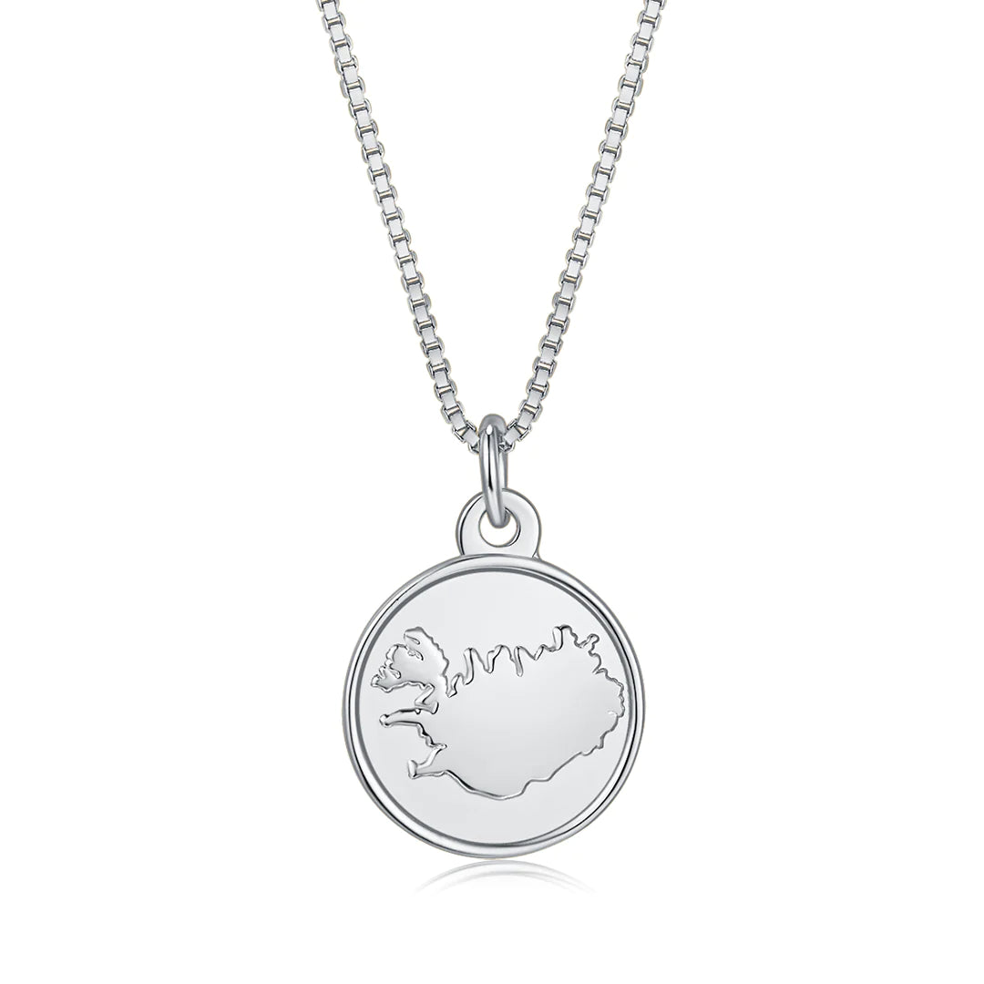 Ísland - Hálsmen Þjóðlegt og fallegt íslandsmen frá Vera Design. Rhodiumhúðað silfur 45cm löng keðja með 5cm framlengingu