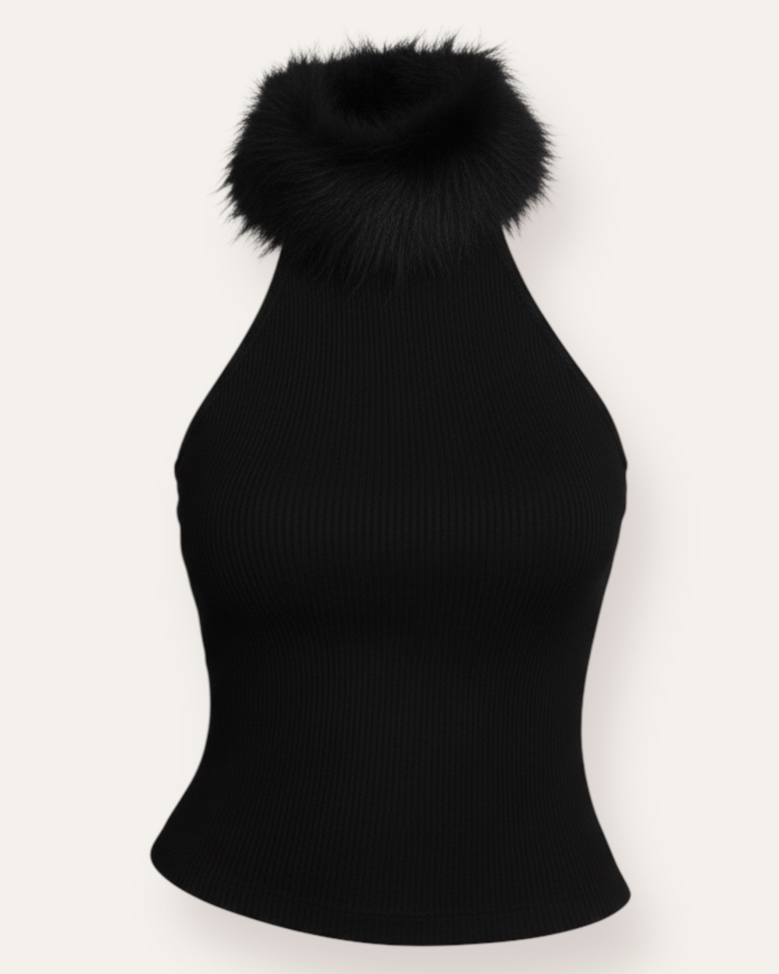 FORPÖNTUN Ribbaður halter toppur með loðpompi Stílhreinn og mjúkur ribbaður toppur með fallegu halter-sniði sem mótar sig fallega að líkamanum. Toppurinn er úr teygjanlegu og þægilegu efni ... Sjá nánar