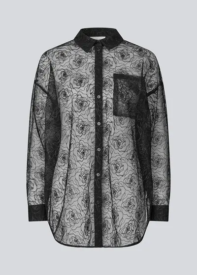 Flott skyrta í ‘oversized’ sniði með fallegu útsaumuðu rósamynstri.