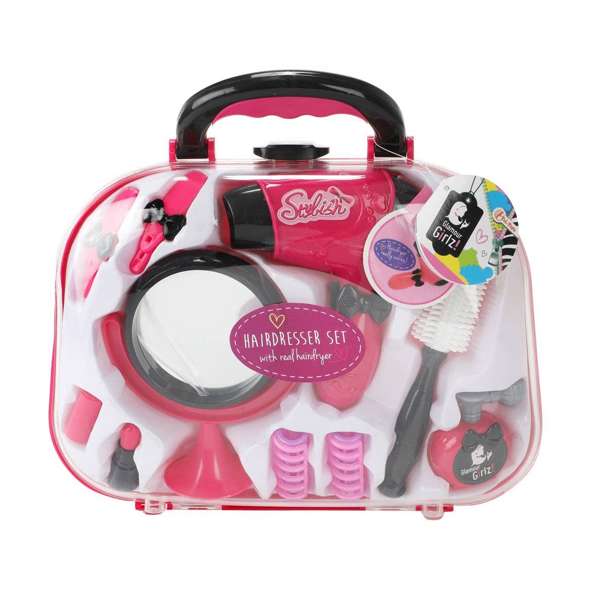 GIRLZ Hairdresser set with Real Hairdryer in Suitcase