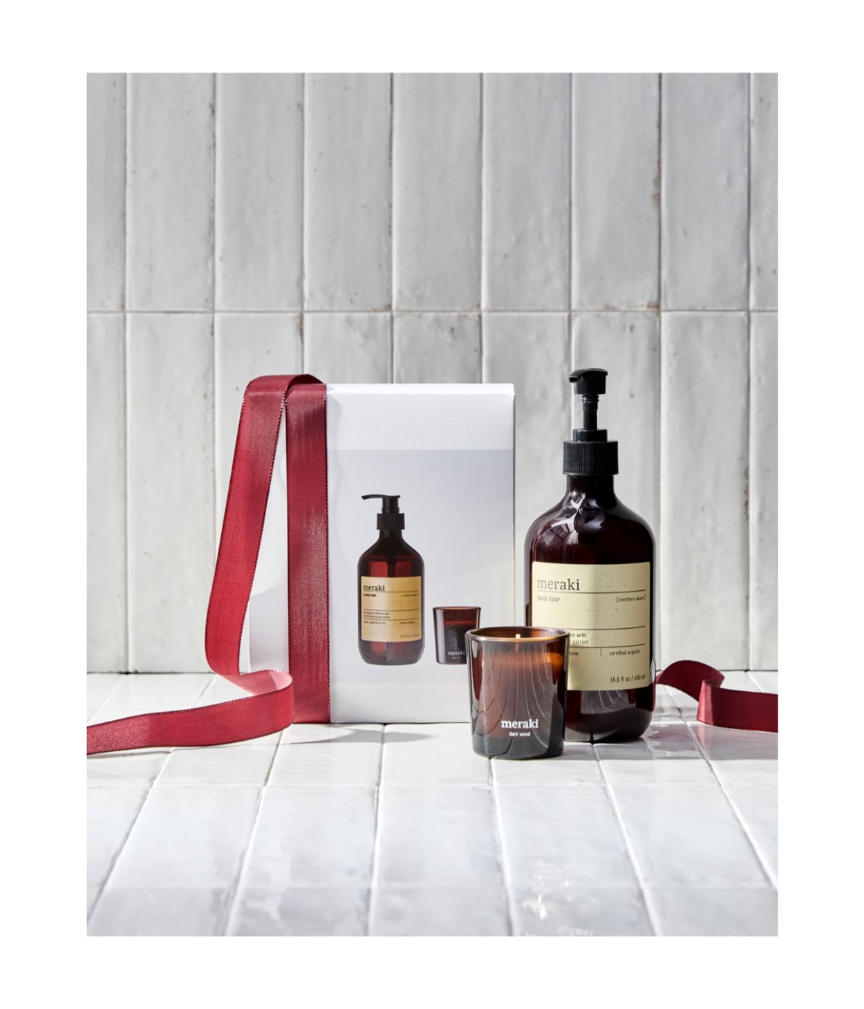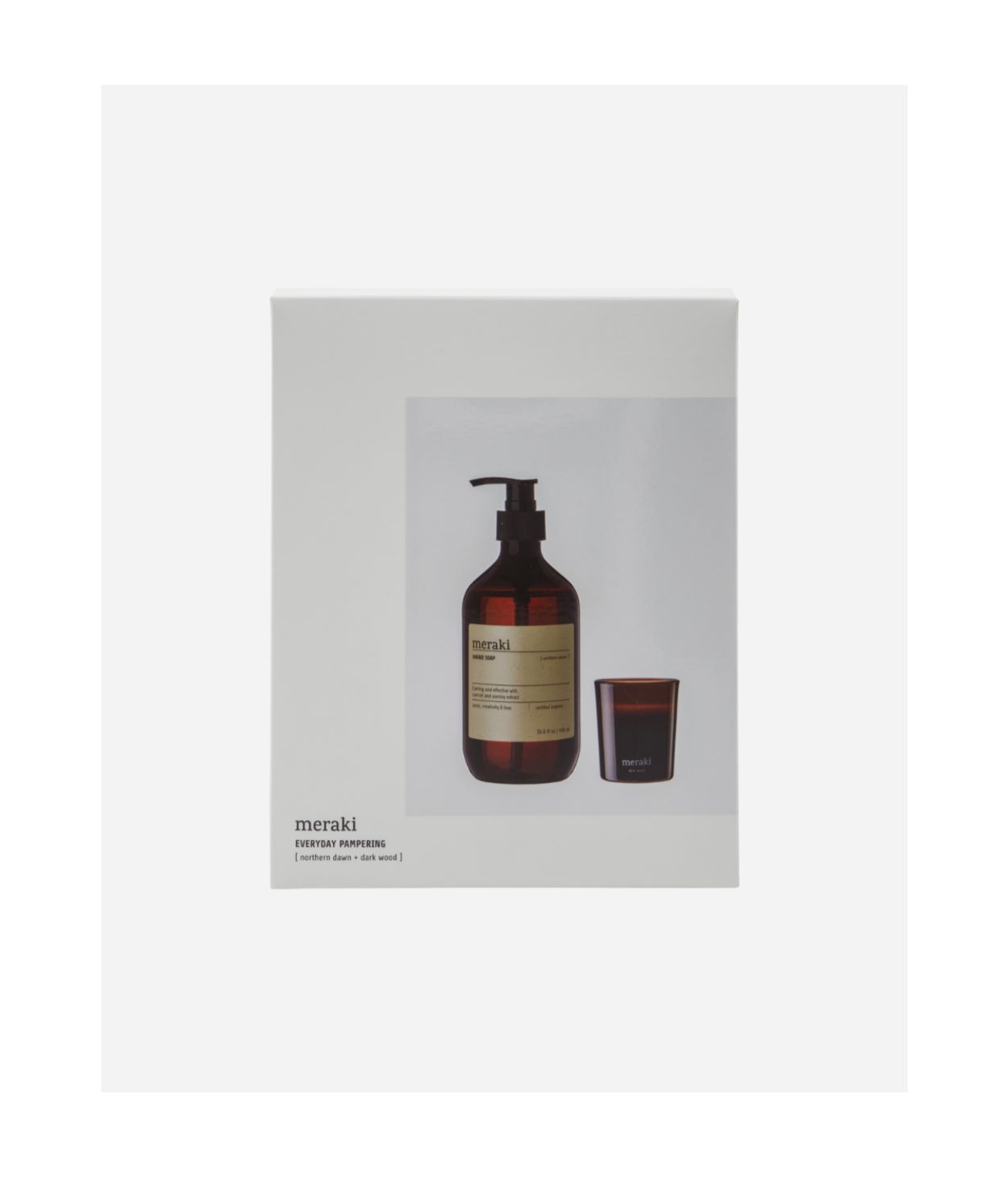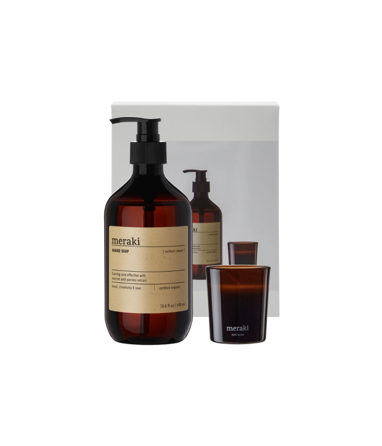 Inniheldur 490mL Northern Dawn handsápu og lítið Dark Wood ilmkerti