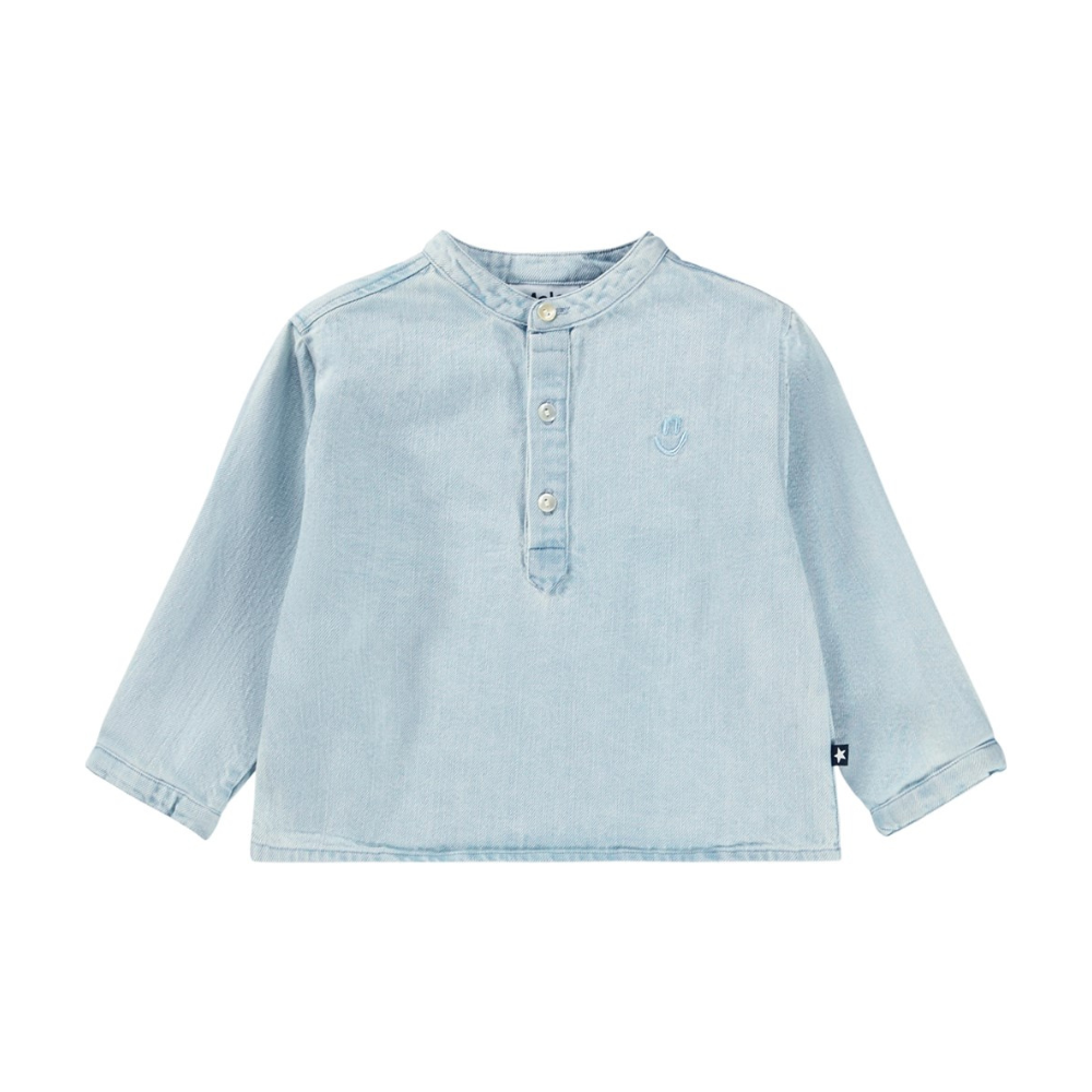 Ljós blá, hálf hneppt gallaskyrta frá Molo. 100% bómull.