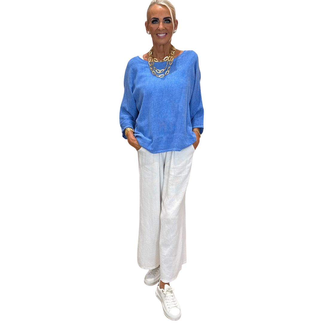 Kóngablá hörskyrta með vasa