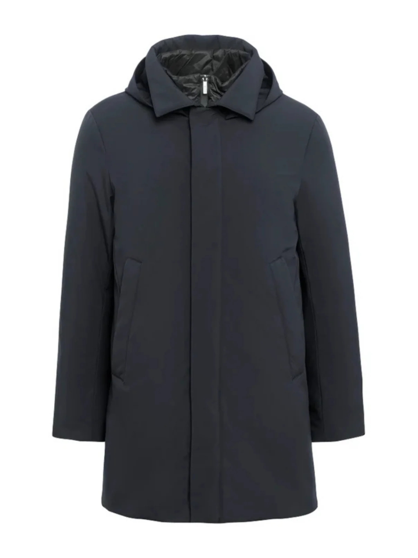Removable hood with string Front zipper closure Large side pockets Zipped inside pockets Quilted lining inside with padding Filling real down/feather Performance stretch Water repellent 90% ... Sjá nánar