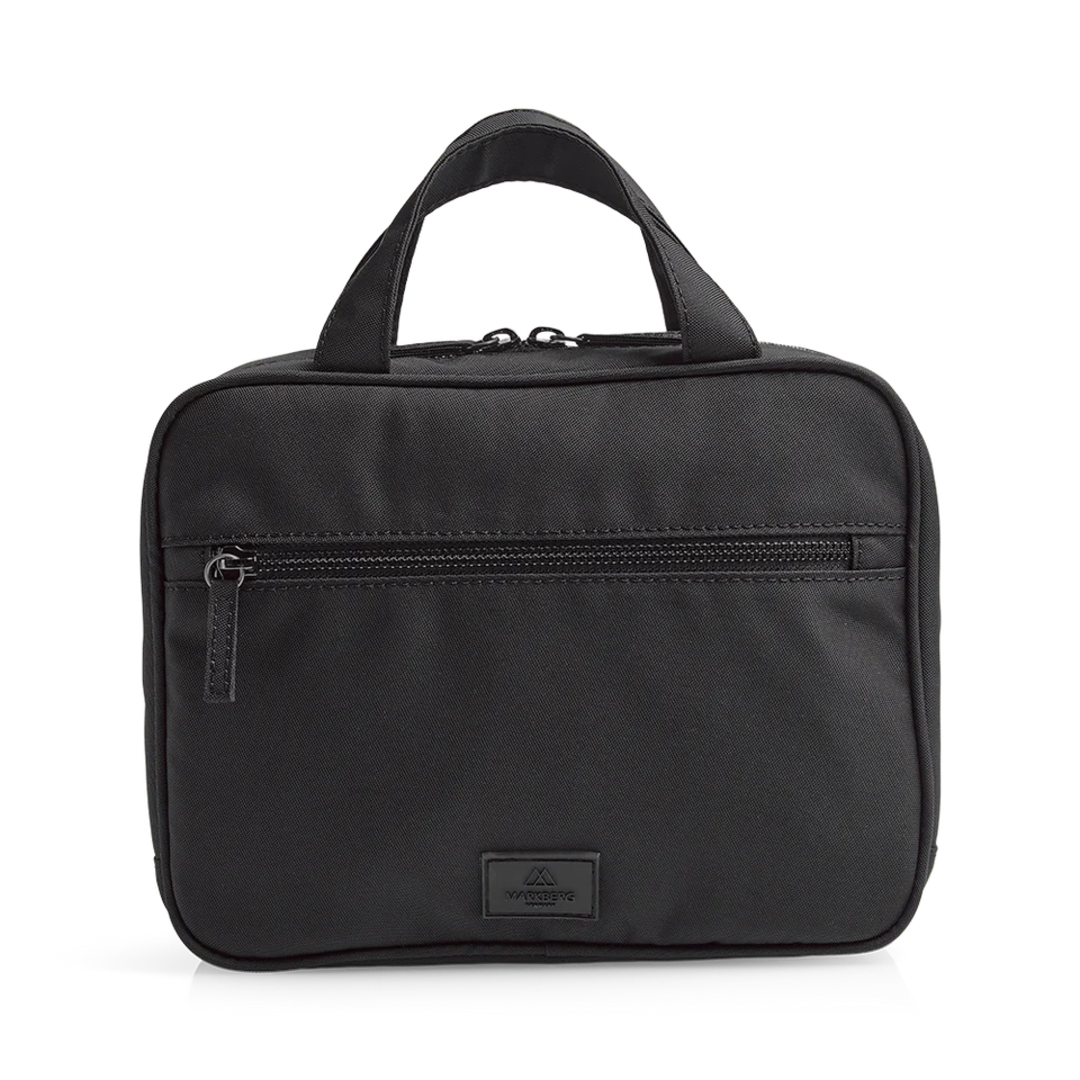 Stílhrein og praktísk snyrtitaska í rétthyrndu formi frá Markberg, fullkomin til að halda snyrtivörum og förðunarvörum skipulögðum heima eða á ferðalögum. | DiscoverMBG Toiletry Bag Rec Black