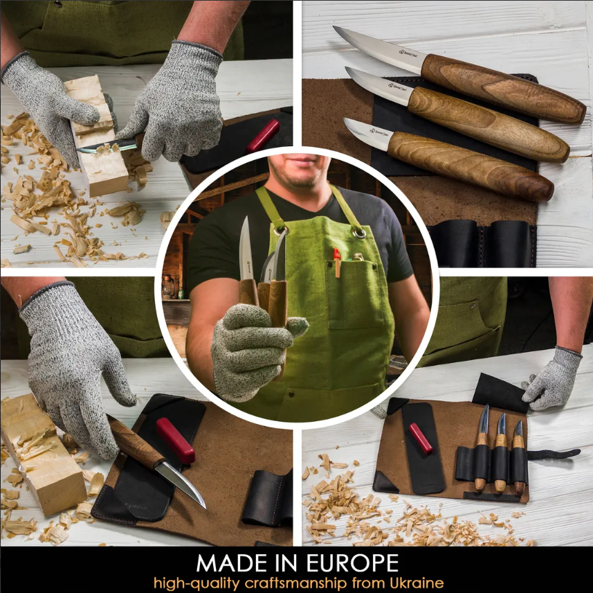 BeaverCraft S19X – Útskurðarsett með hnífum úr hágæða stáli. Settið inniheldur 3 útskurðahnífa, pakkað í sérhannaða leðurtösku. Taskan verndar hnífana og tryggir langan líftíma þeirra. ... Sjá nánar