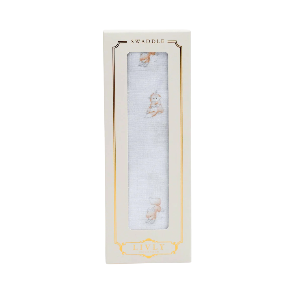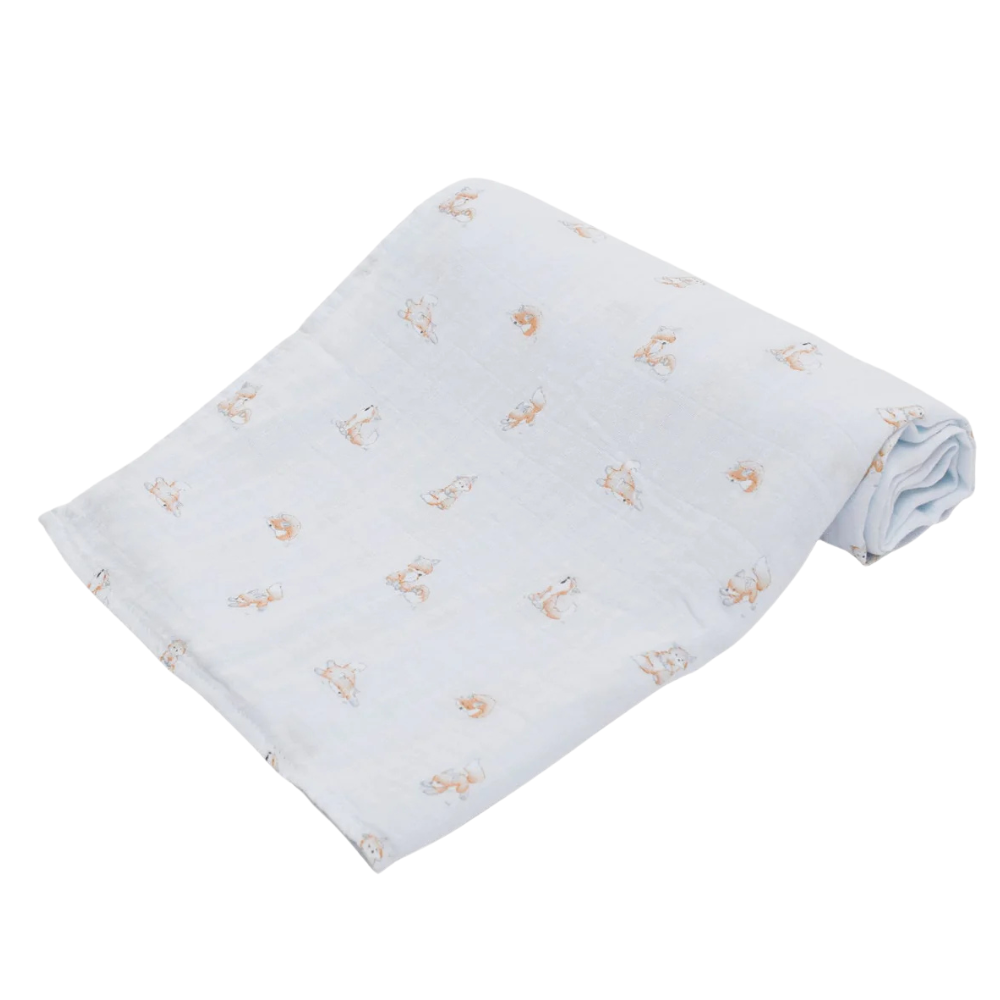Dásmalega mjúkt taubleiu teppi frá Livly. Teppið er fallega myndskreytt með myndum í bláum lit. Stærð 120x120 cm. 70% bambus og 30% bómull.