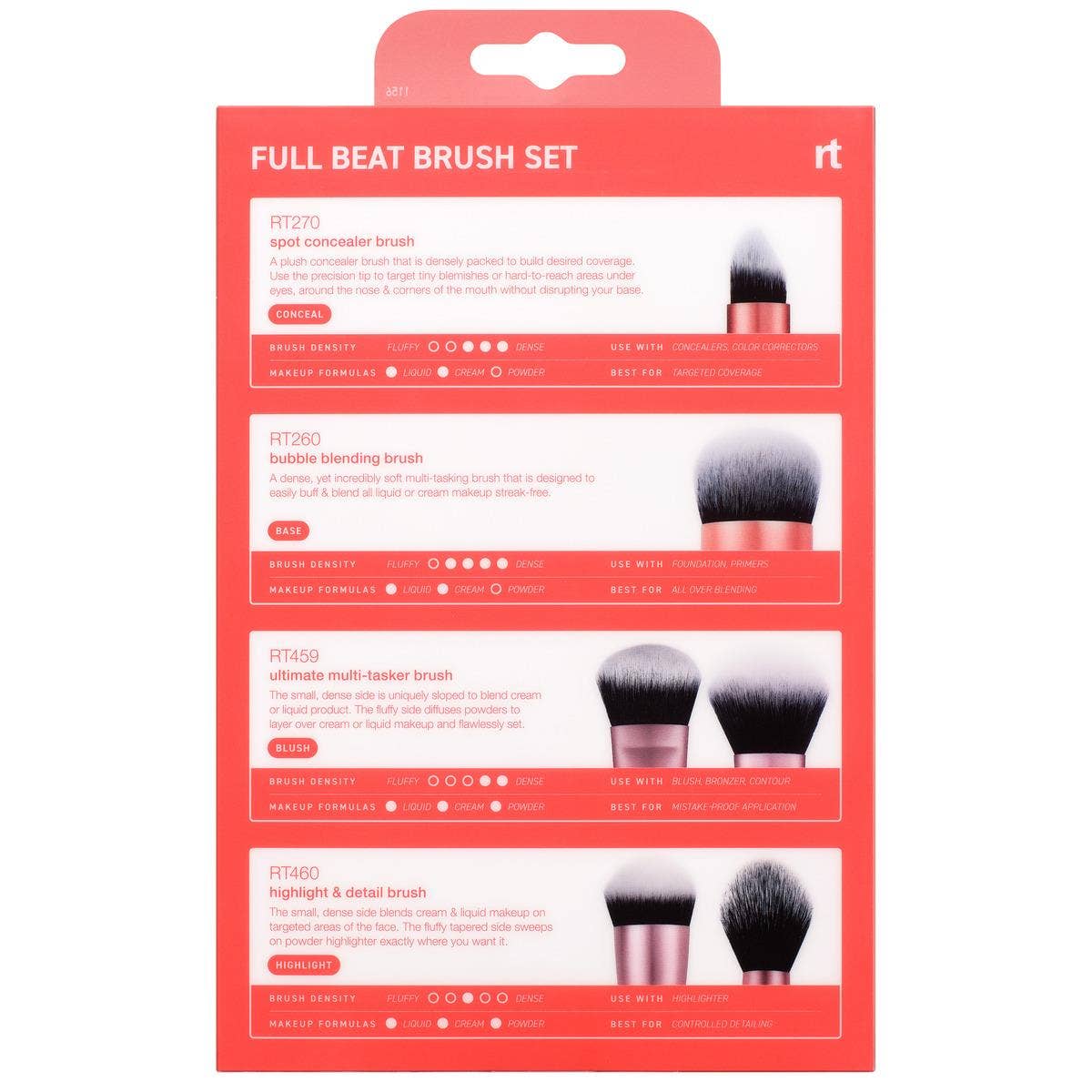 Full Beat brush set inniheldur fjóra bursta til þess að fullkomna útlitið. Hentar fyrir fljótandi, kremkenndar- og púður formúlur.