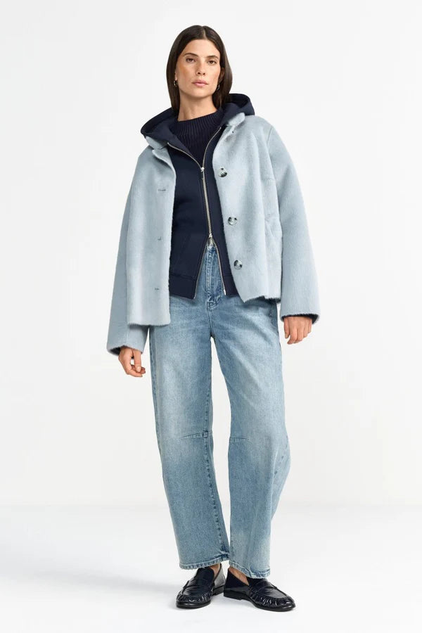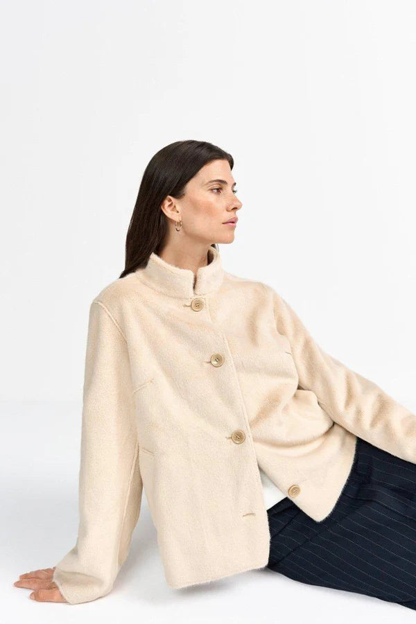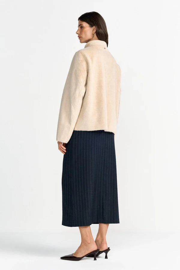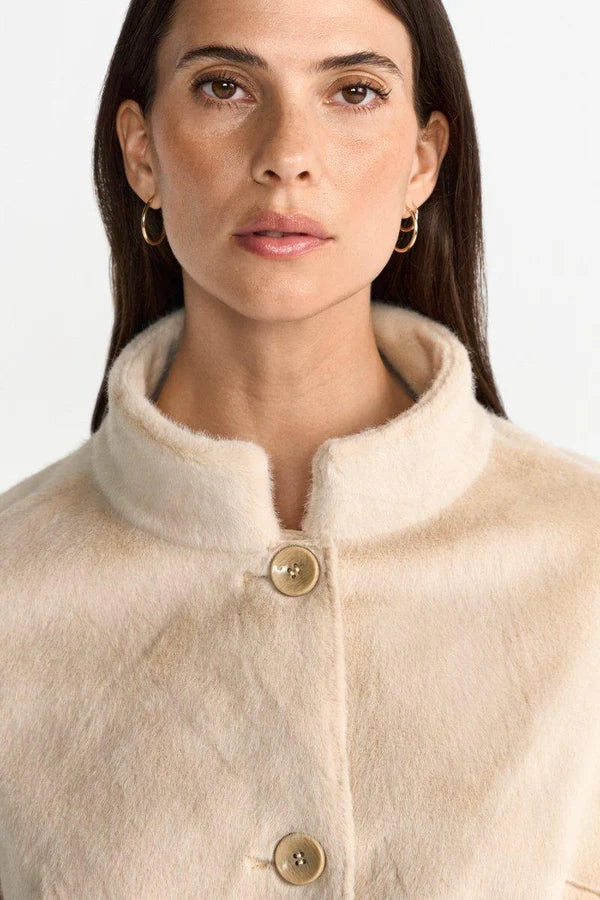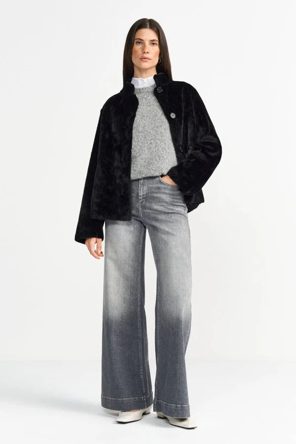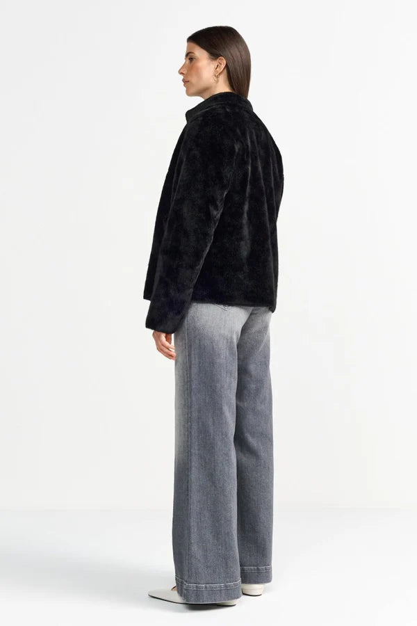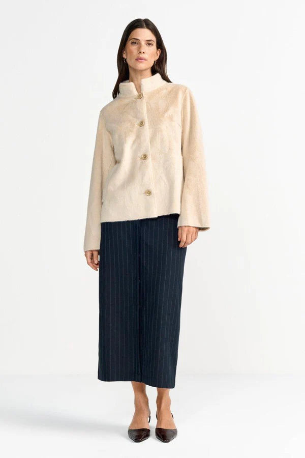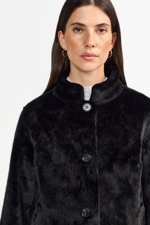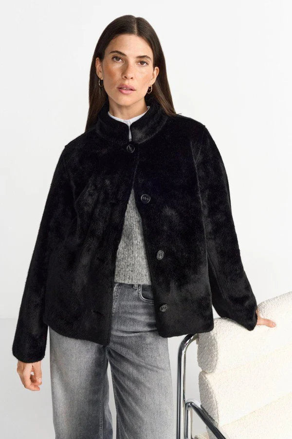 Stuttur pels úr gervi kanínufeld. Beint snið.  100% Polyester