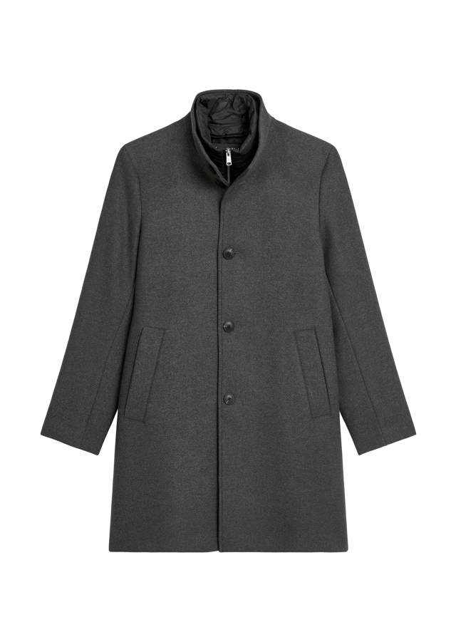 Ullarfrakki með vindheldri hönnun og standkraga sem hægt er að hneppa úr