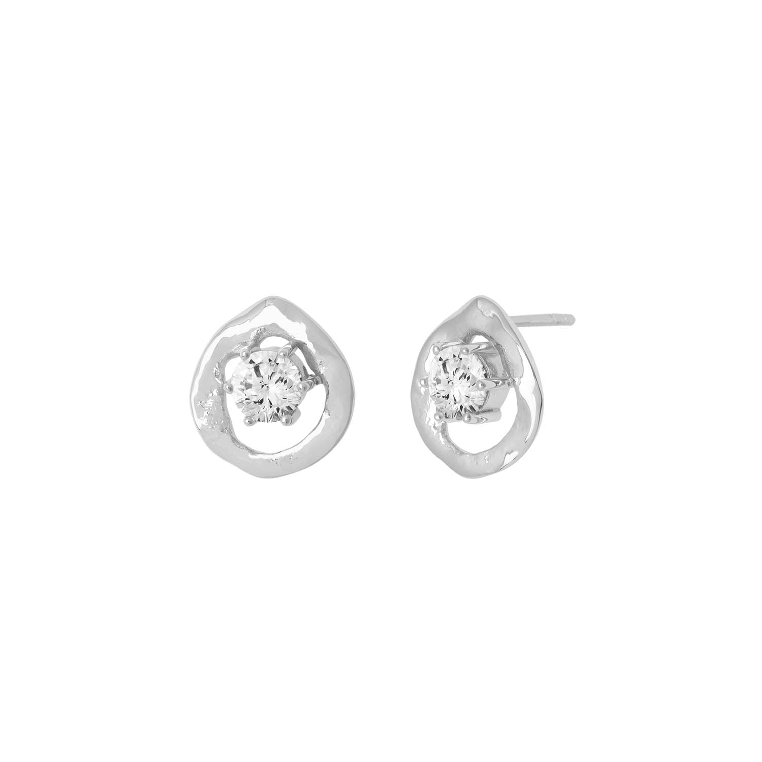 Eyrnalokkarnir eru handsmíðaðir úr rhodiumhúðuðu silfri með cubic zirconia steinum. Hæð lokkana er um 12 mm. Hönnuður og smiður er Berglind Snorra.