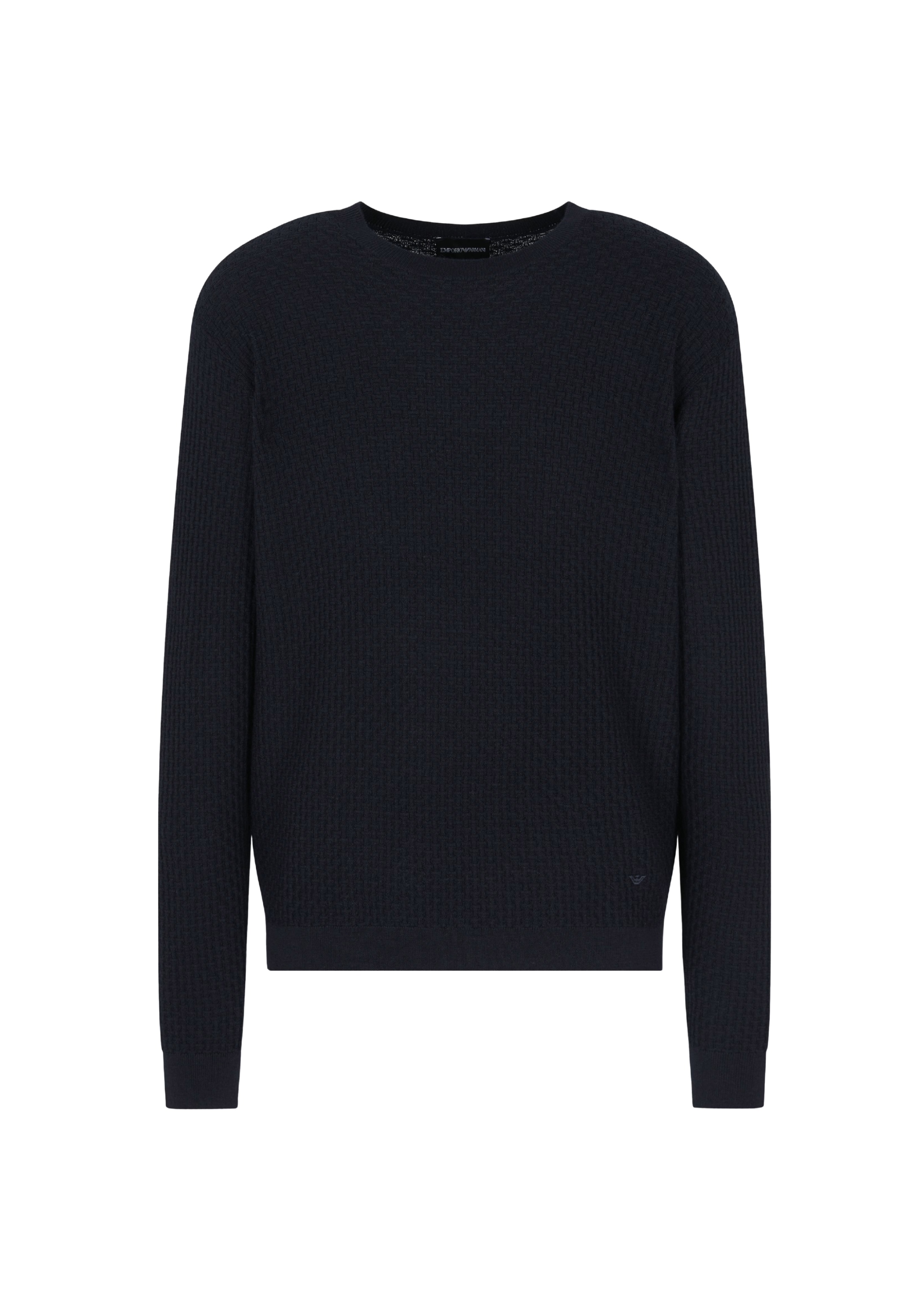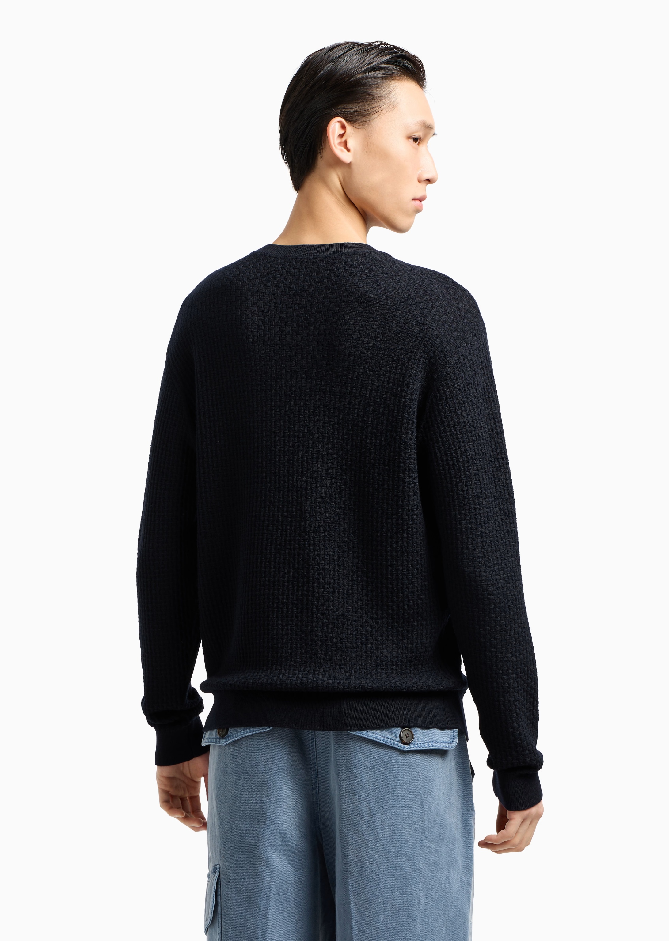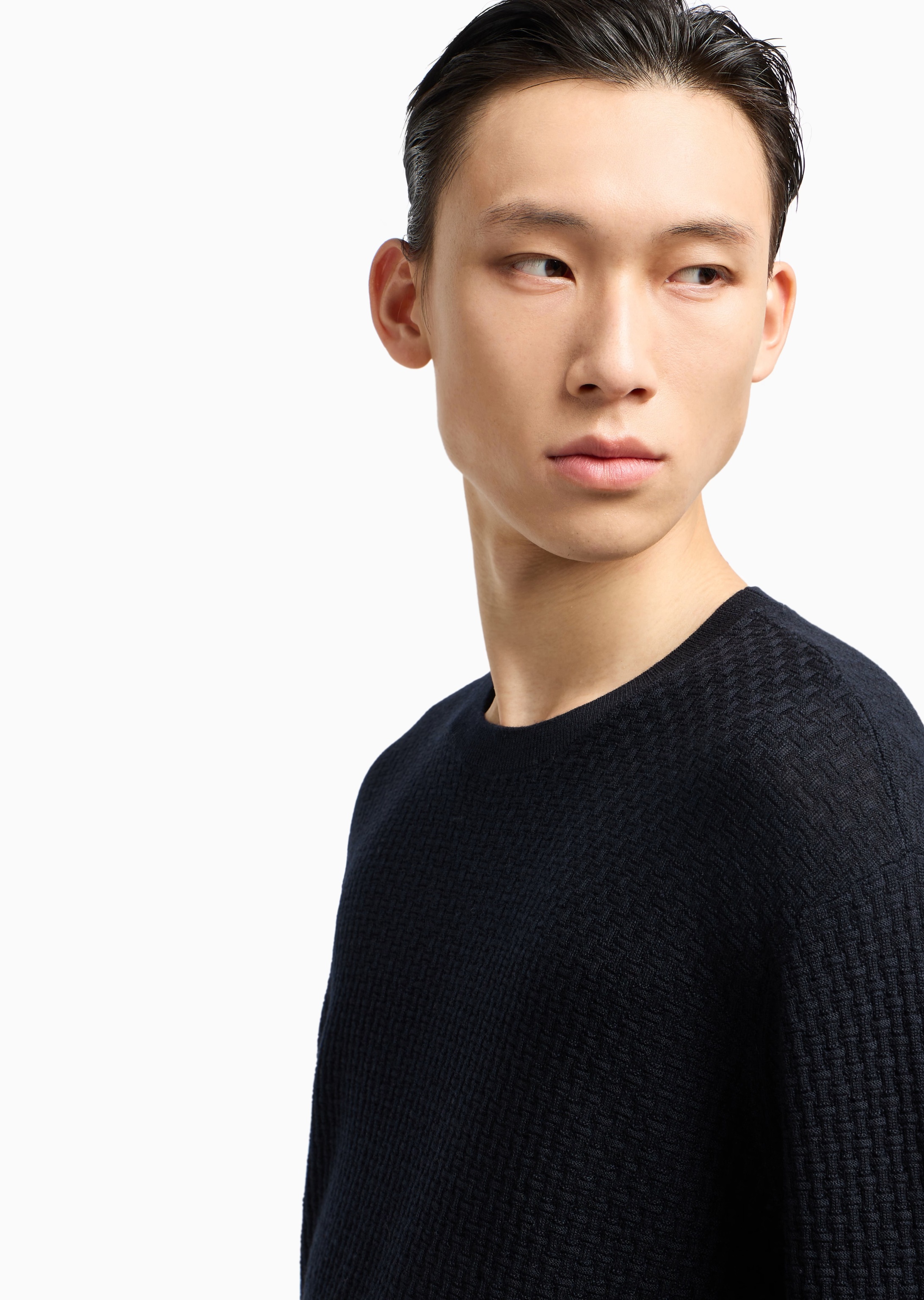 Crew-neck jumper made of pure virgin wool with a particularly tactile texture, with an embossed jacquard pattern that creates a natural intersection of structured and sophisticated motifs all ... Sjá nánar