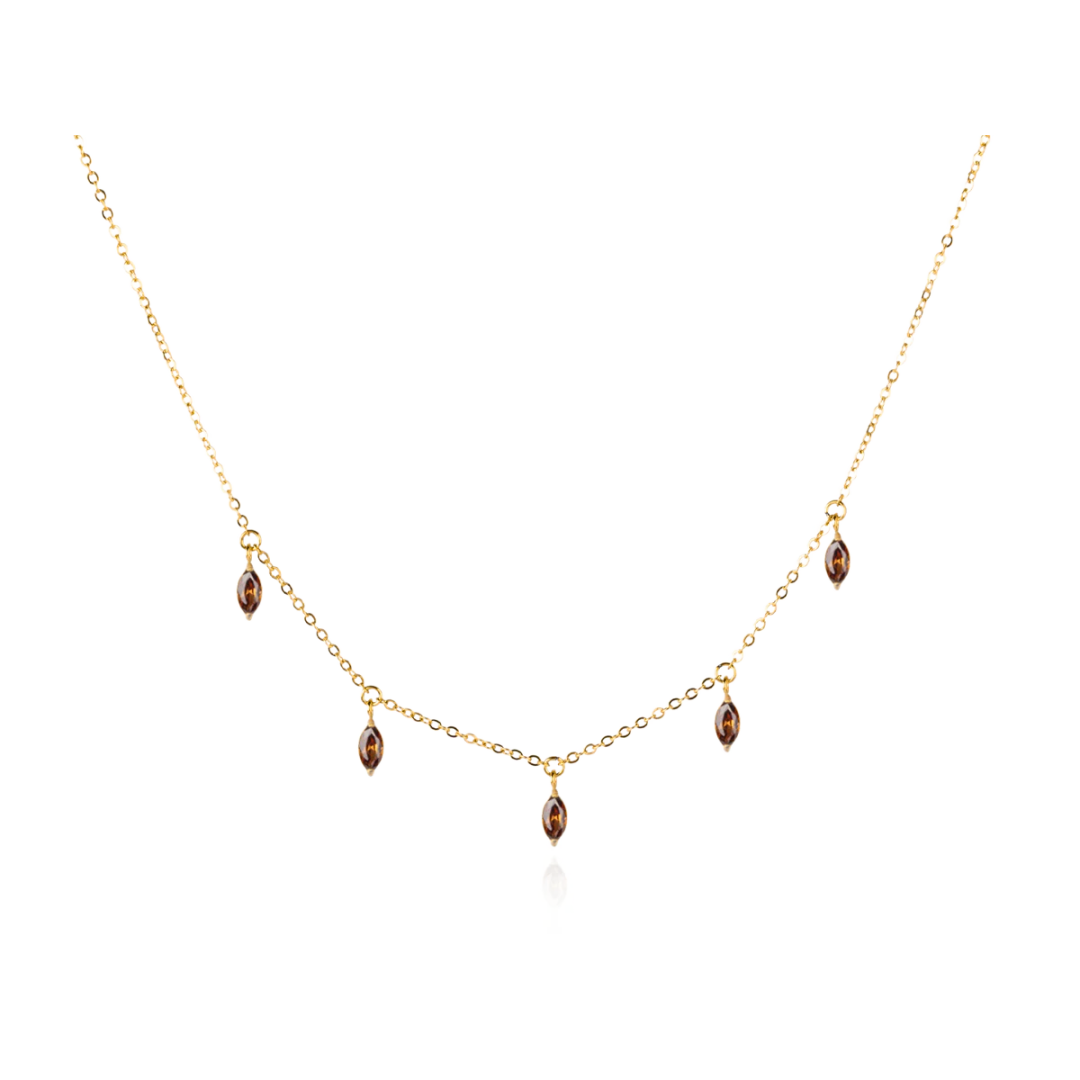 Lengd: 40 cm + 5 cm lengingEfni: Ryðfrítt stál og 5 zircon steinar | Drop Halsmen - brúnir steinar