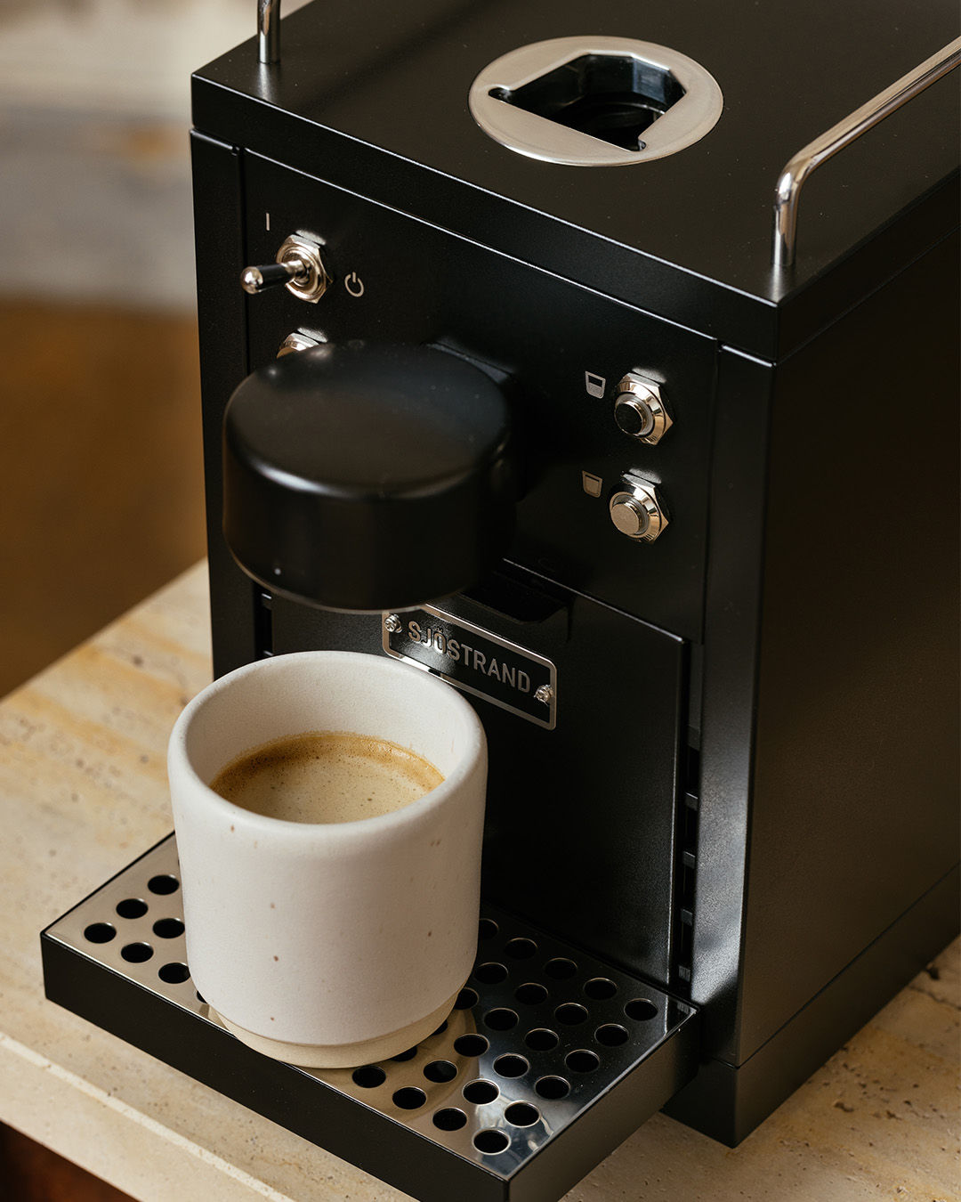 Sjöstrand kaffivélin er stílhrein hylkjavél úr ryðfríu stáli, hér í svatri og mattri útgáfu. Minimalísk skandinavísk hönnun búin þeim eiginleikum að tryggja rétt hitastig og þrýsting sem ... Sjá nánar