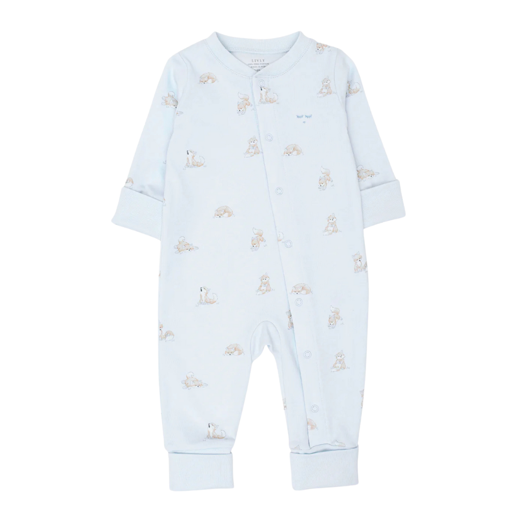 Dásamlega mjúkur og fallega myndskreyttur heilgalli frá sænska merkinu Livly. Galinn er smelltur að framan og með stroffi við ermar og skálmar. 100% pima bómull.