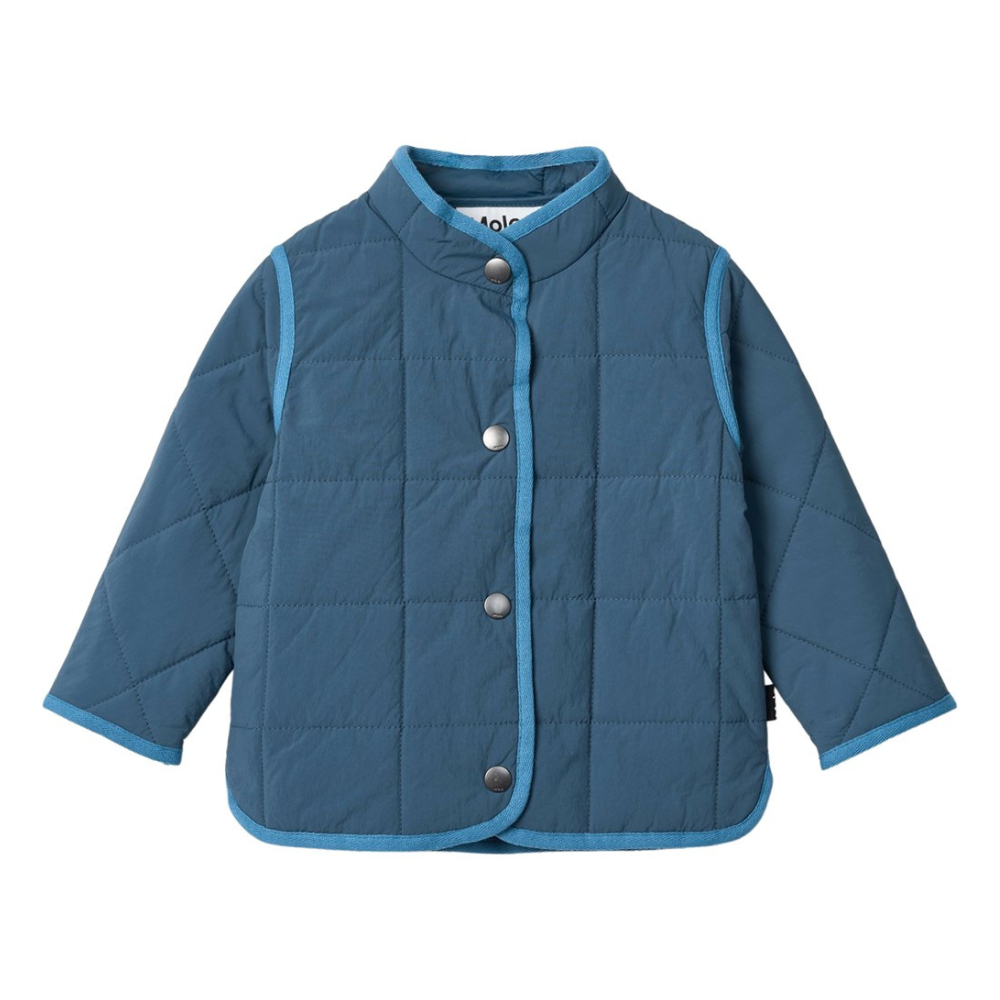 Vatteraður ungbarna jakki frá Molo. Jakkinn smellist að framan. 100% nylon.