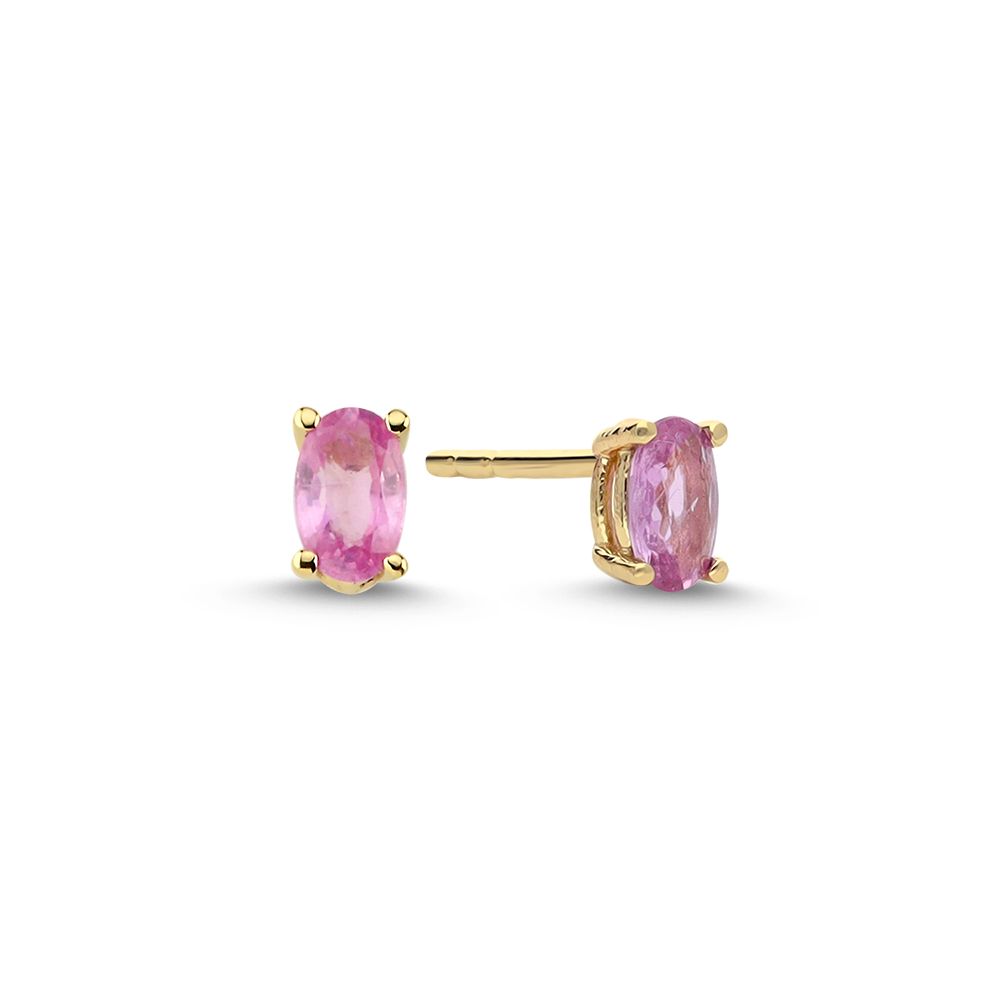 Gull eyrnalokkar með bleikum safír