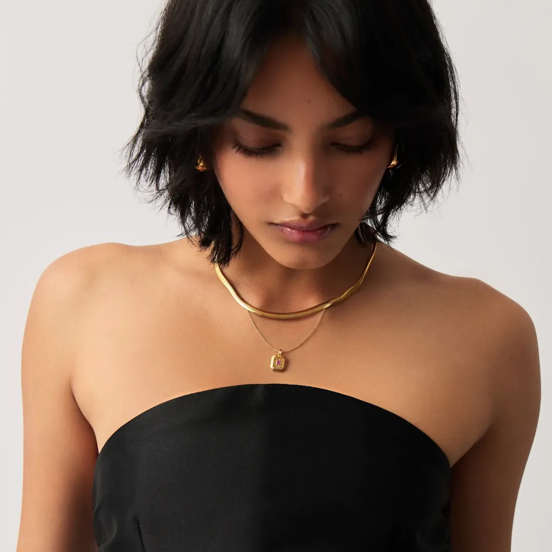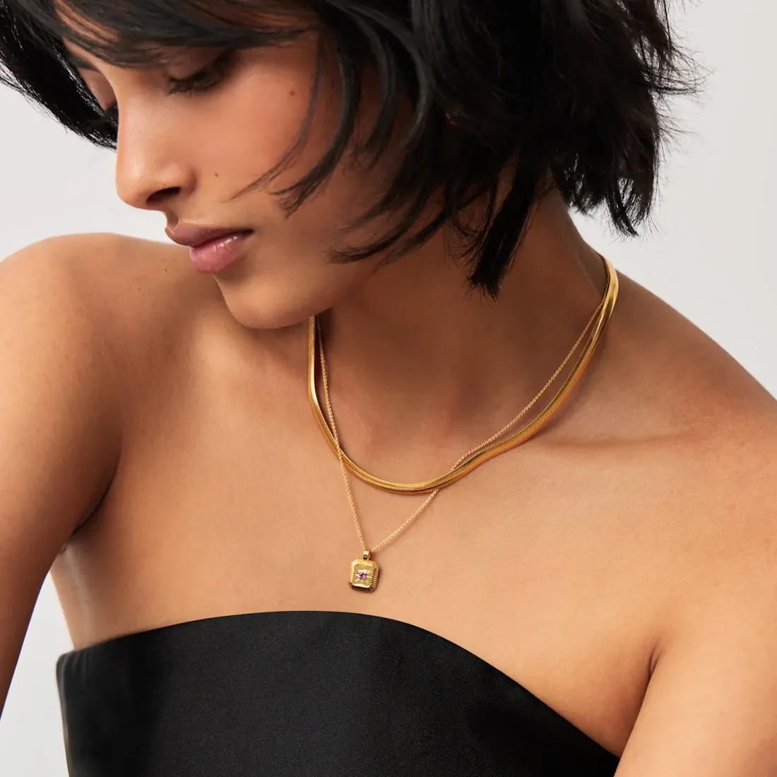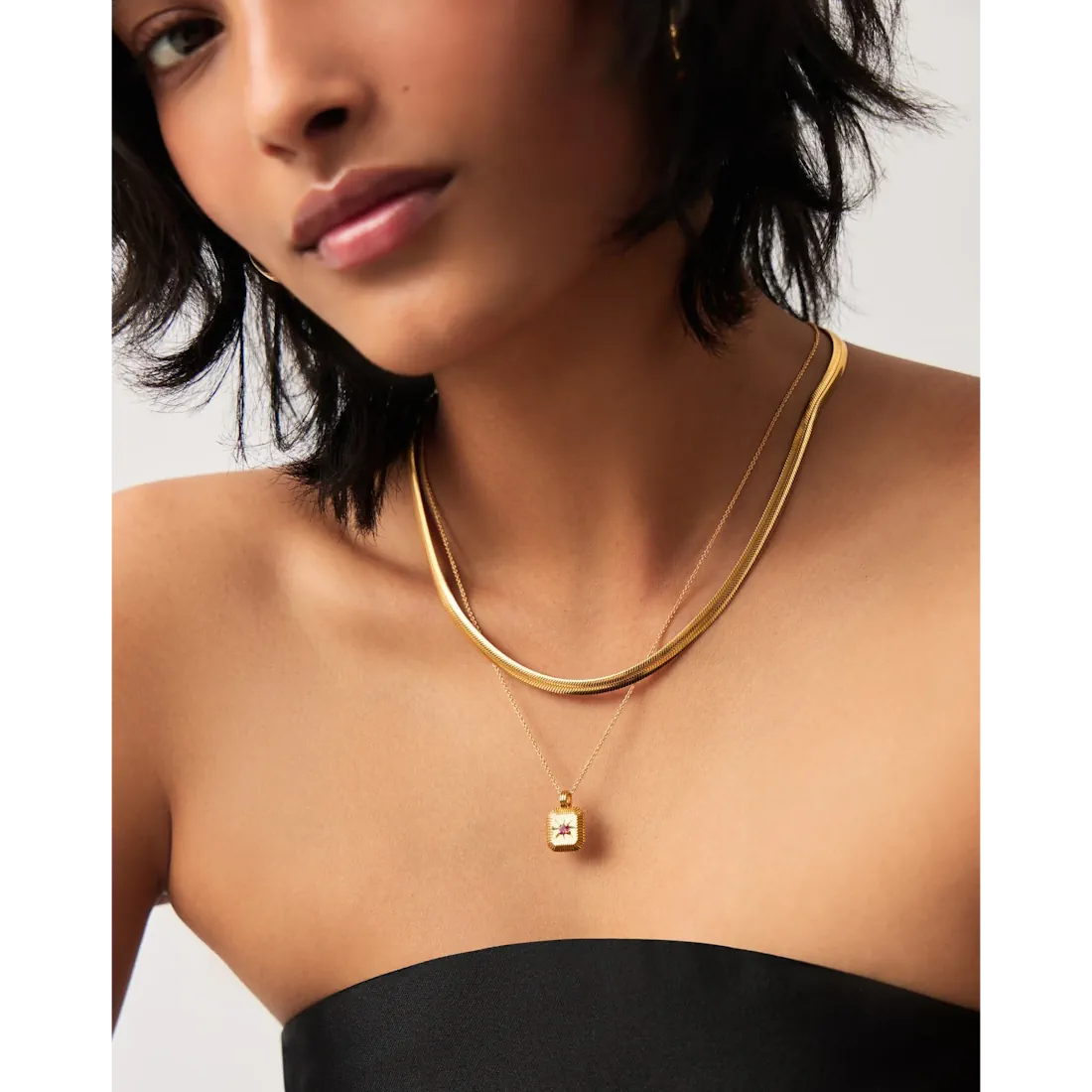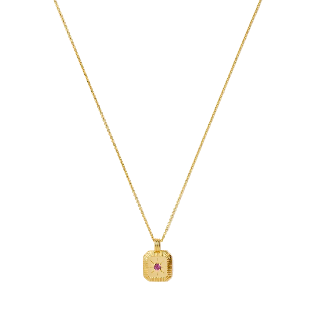 Efni mens og keðju: 18kt gullhjúpað silfur Lengd keðju: 41cm upp í 45cm Mánuður: Október Steinn: Náttúrulegt túrmalín Stærð mens: 12.2mm x 11mm x 1.8mm