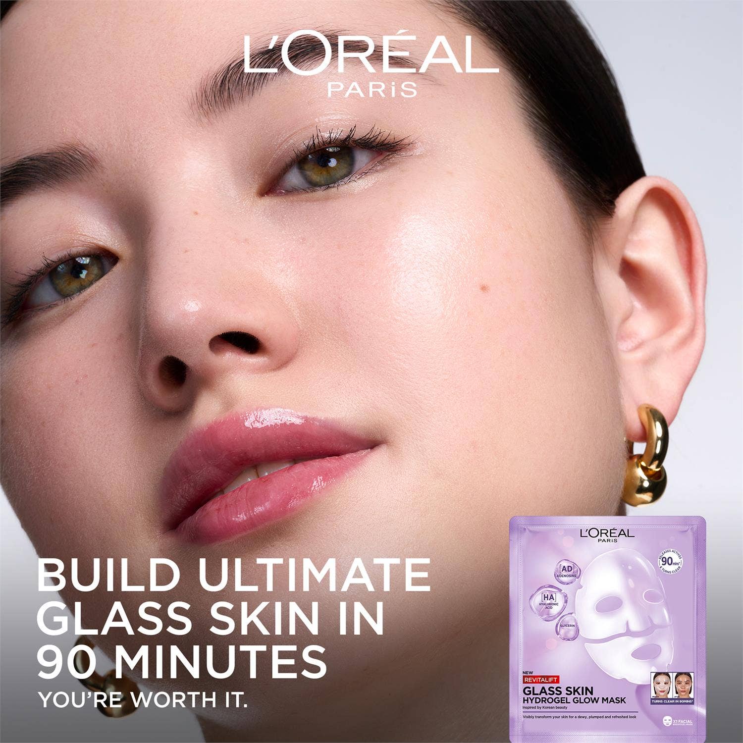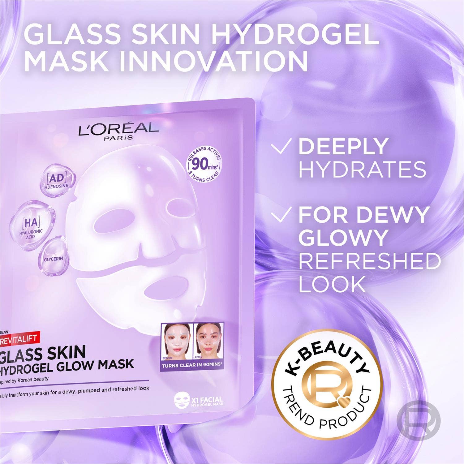 Hydrogel andlitsmaski með virkum innihaldsefnum. Innblásin af kóreskri húðumhirðu.