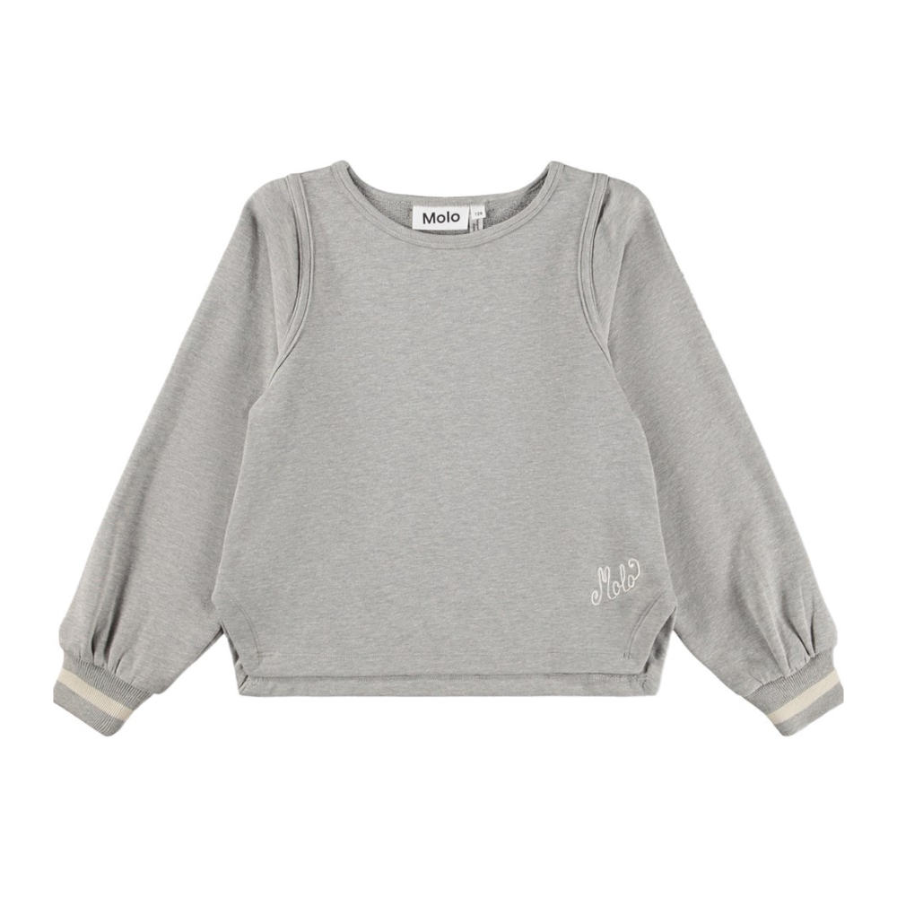 Grá jogging peysa frá Molo. Stroff við ermar. 96% bómull og 4% elastane.