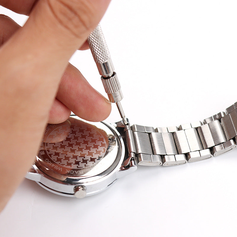 Fjölhæft verkfæri til að skipta um ól á úrum - hvort sem það er leðuról, sílikonól eða stálkeðja. Tólið hefur tvö endastykki: breiðara gafflendi fyrir leðuról og mjórra fyrir málmkeðju. Hægt ... Sjá nánar
