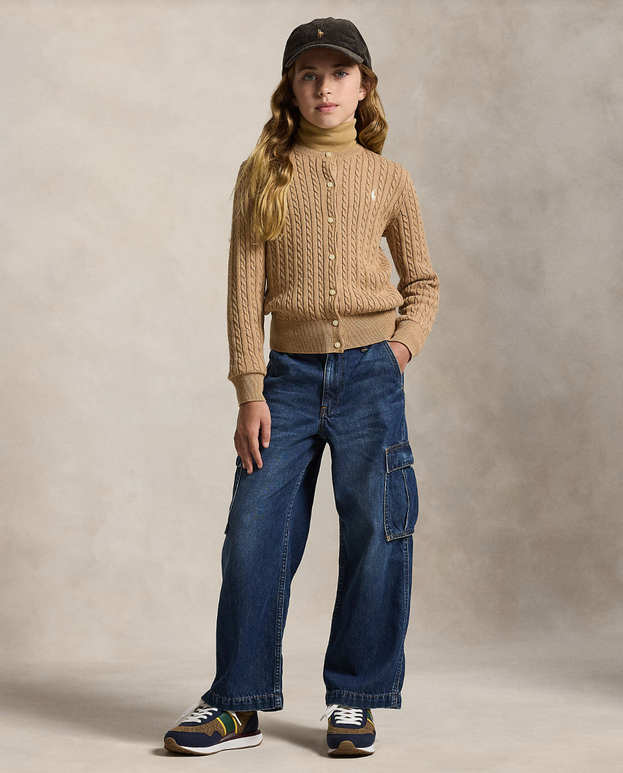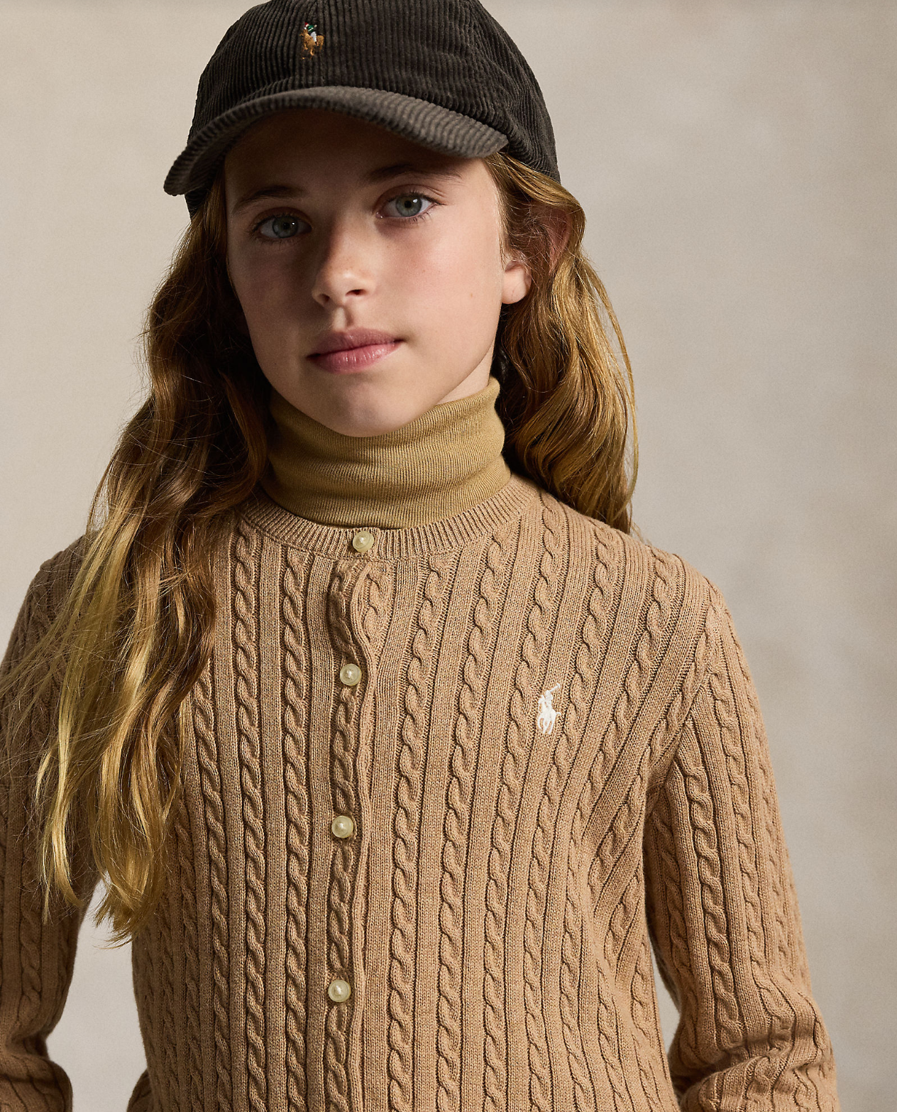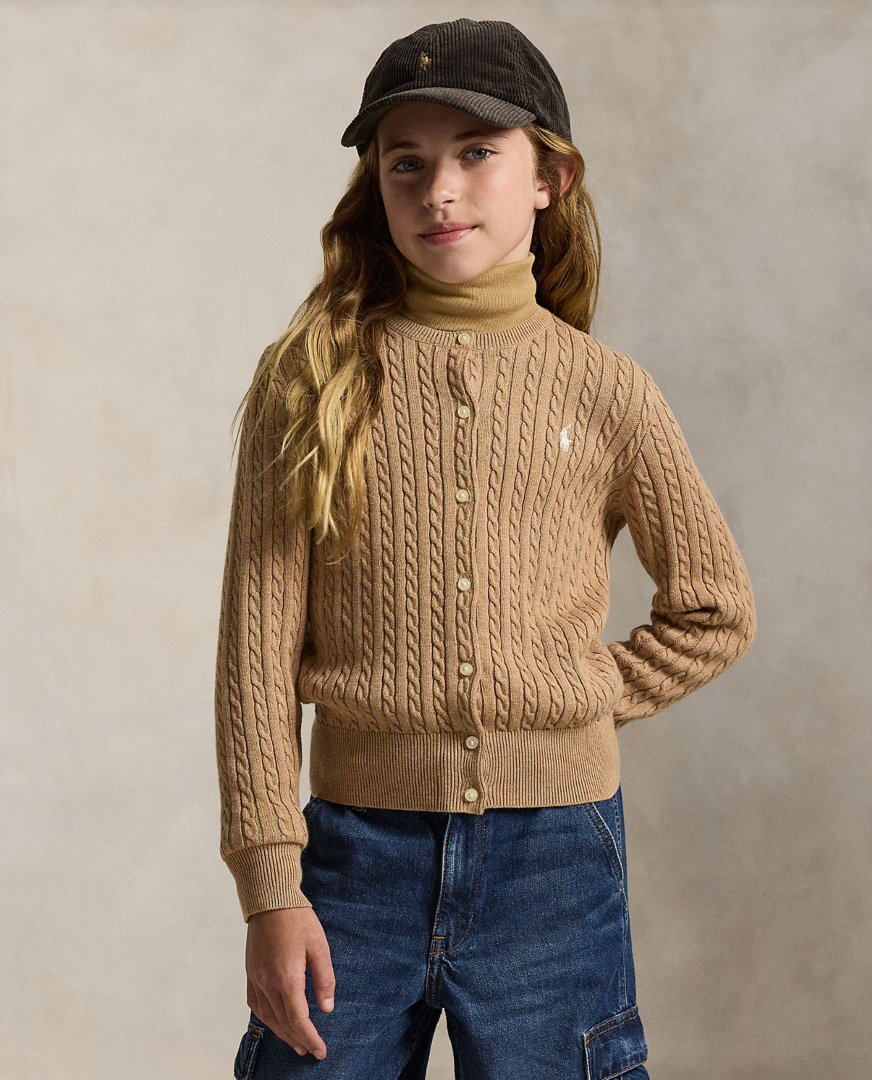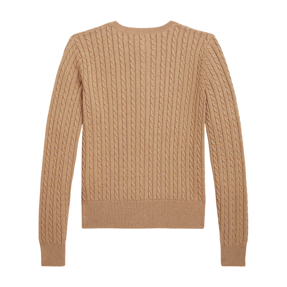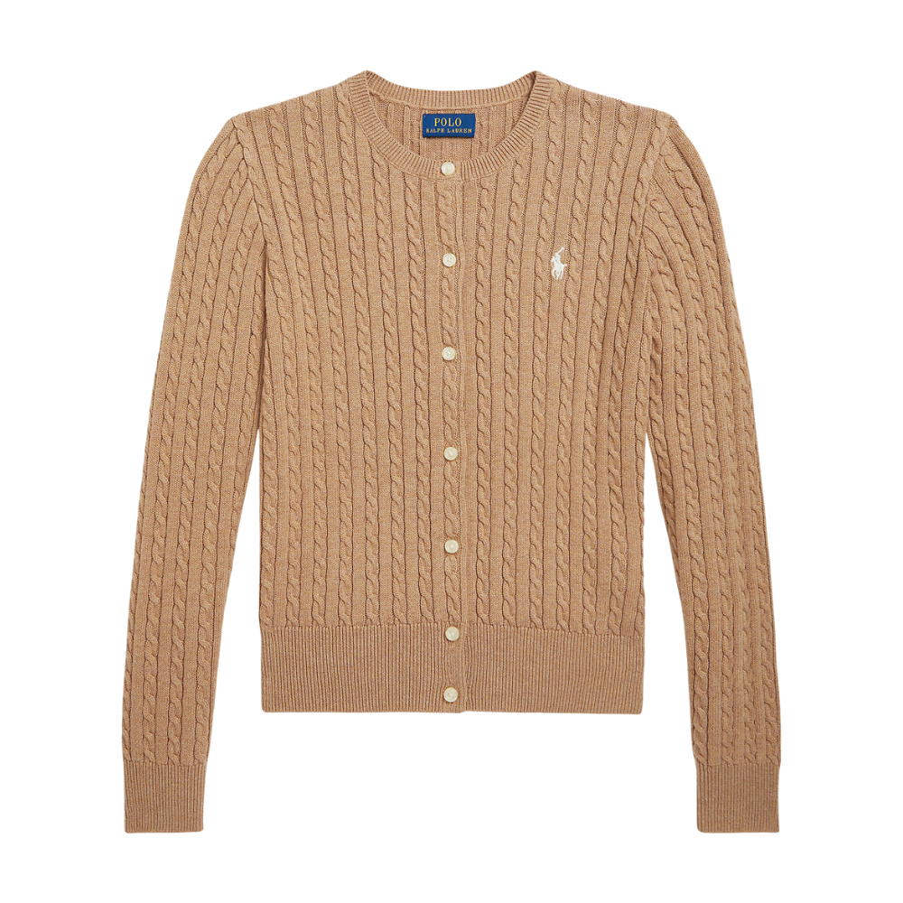 Ljós brún, hneppt kaðlapeysa frá Polo Ralph Lauren. 100% bómull.