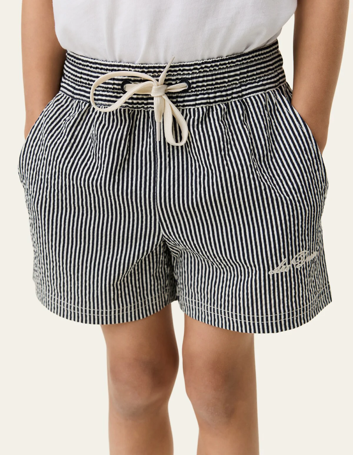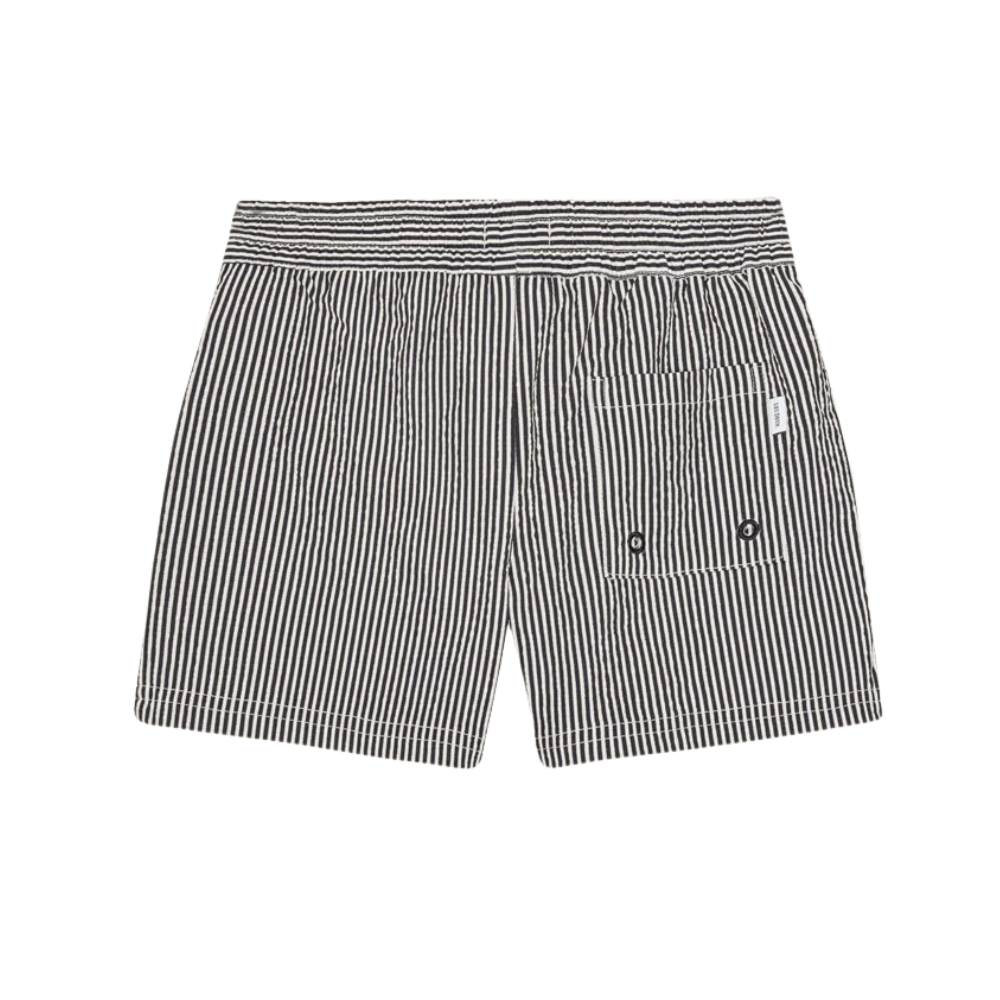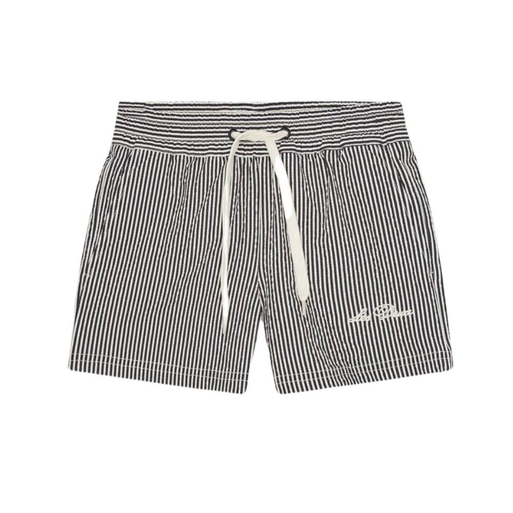 Röndóttar sundbuxur frá Les Deux. Buxurnar eru bundnar í mittið. 55% Polyester og 45% Recycled Polyester.