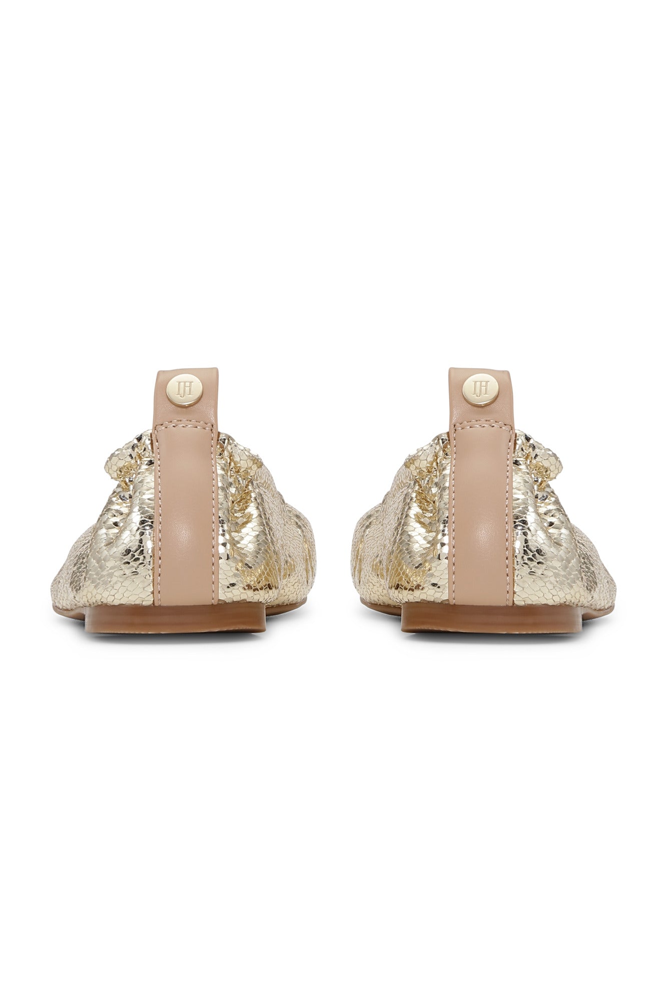 Léttir og sveigjanlegir ballerínuskór, úr gervileðri með metaláferð.