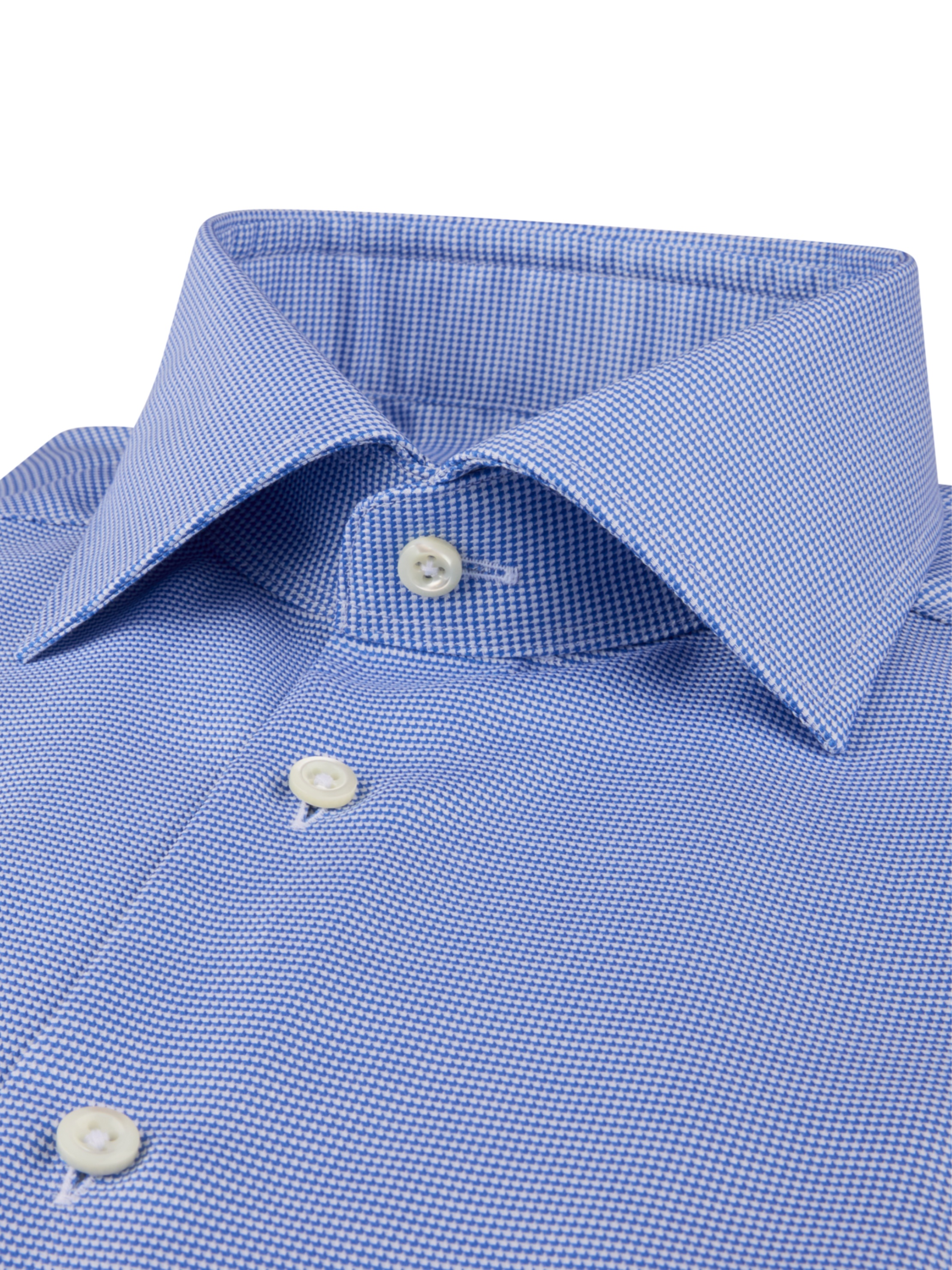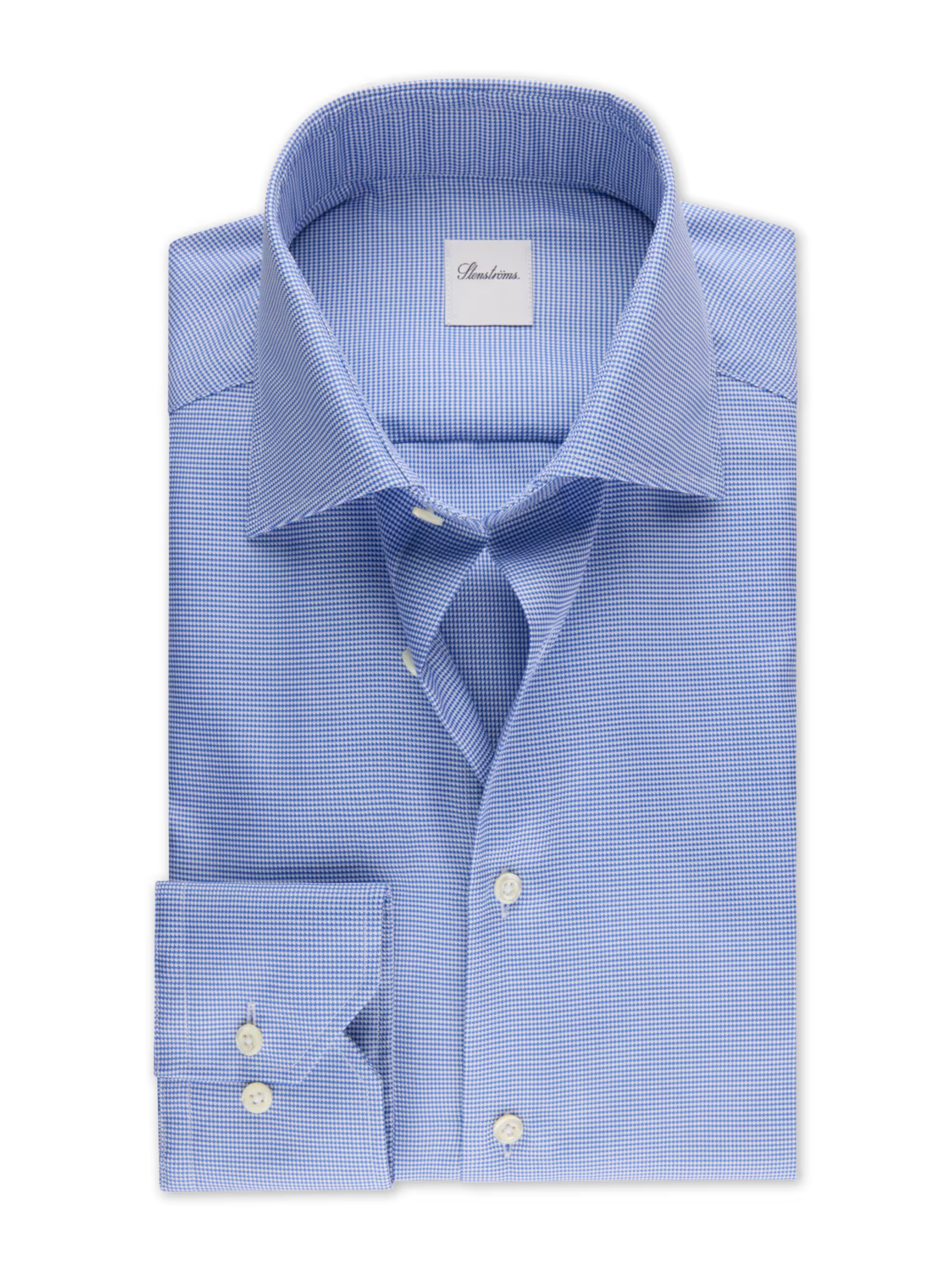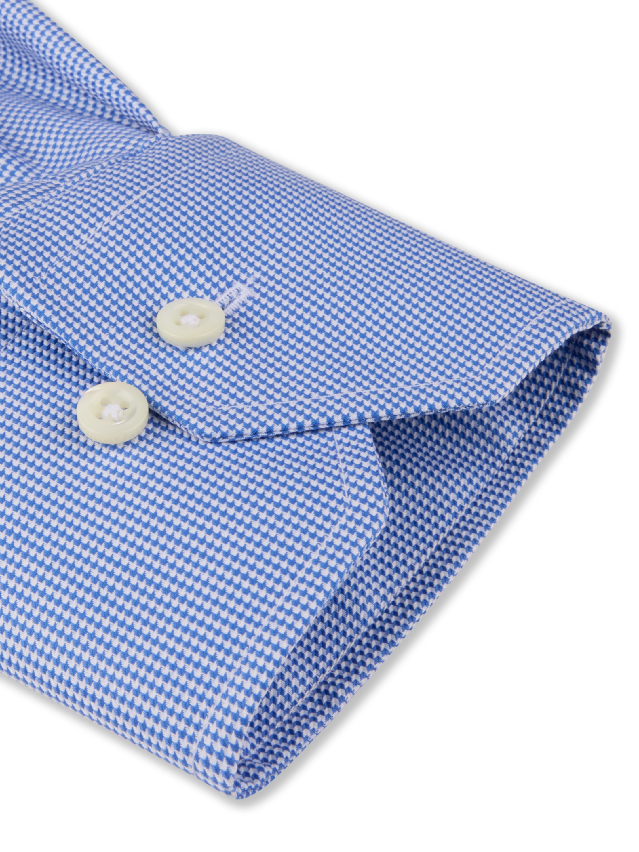 This twill shirt is made of twofold cotton and has a houndstooth pattern. The shirt is detailed with mother of pearl buttons, single cuffs and a cut away collar. Moderate cut away collar, No. ... Sjá nánar