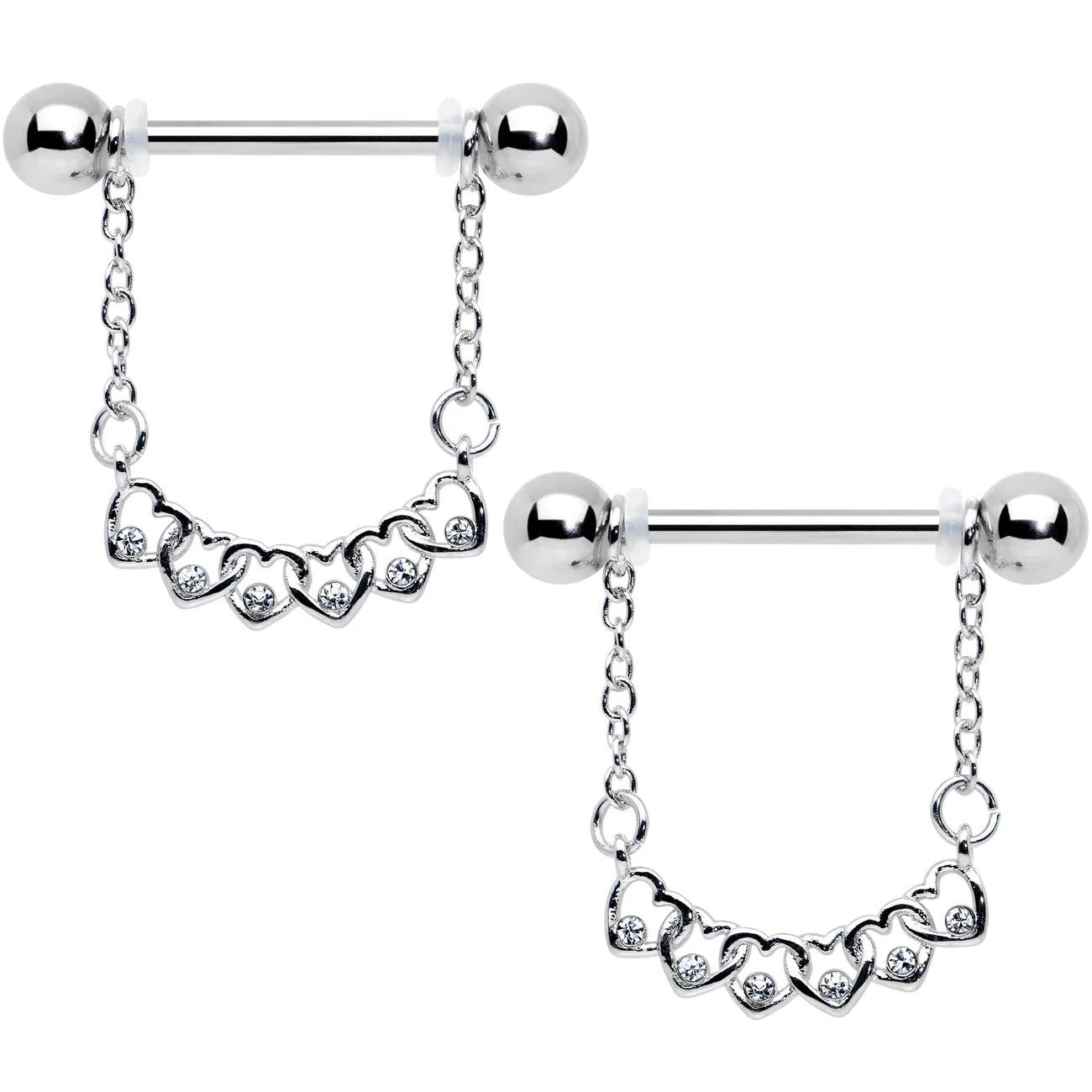 Nipplulokkar með hangandi skrauti og steinum. Lokkarnir eru úr 316L læknastáli.   Lokkarnir eru 16mm á lengd og 1.6mm þykkir. A.T.H. Lokkarnir seljast í pari.