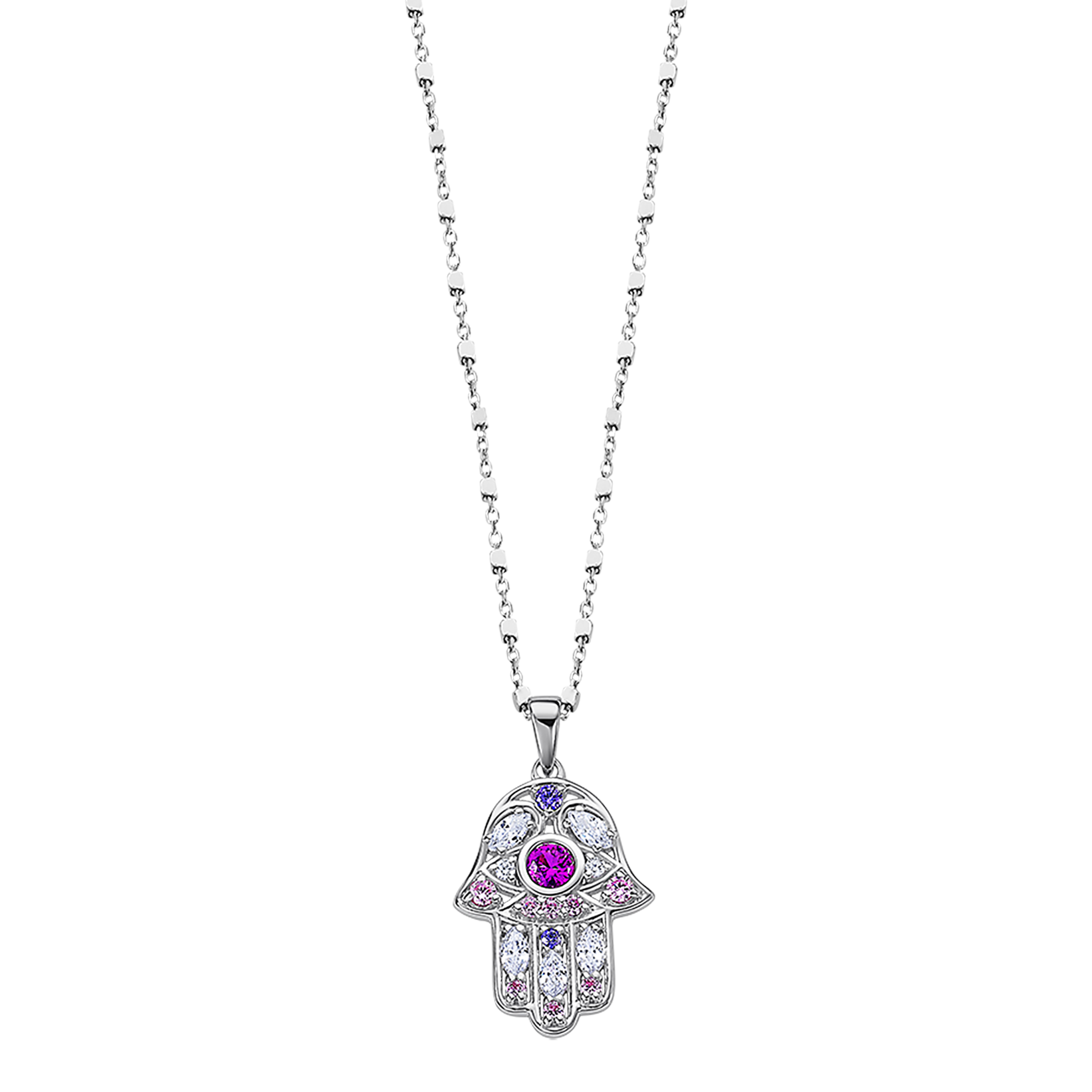 Efni keðju: Rhodiumhúðað silfur Lengd keðju: 42cm Efni mens: Rhodiumhúðað silfur & zirkonia steinar