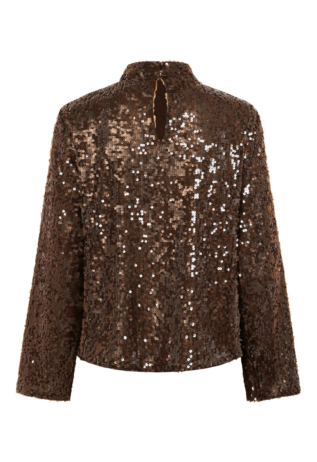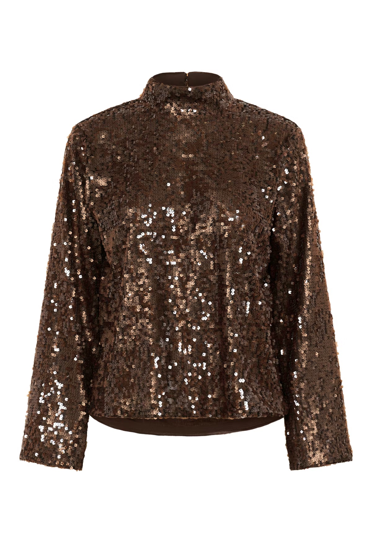 Geggjaður brúnn pallíettu toppur frá KAFFE. 100% polyester