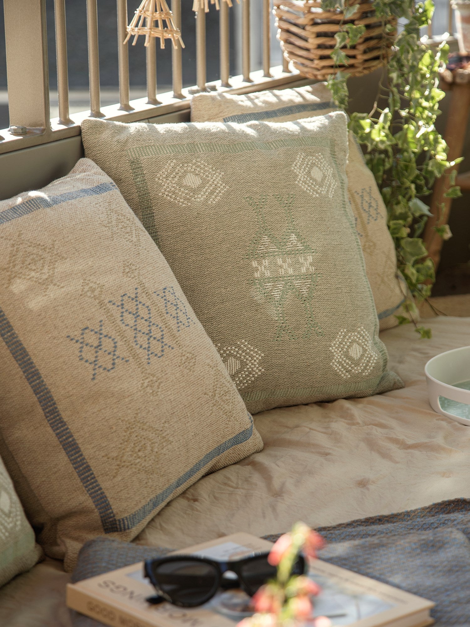 Comfortable elegance "Adding a cushion can transform a room," Anna says. "Perfect for comfort and style," Clara adds, arranging it neatly on the sofa.