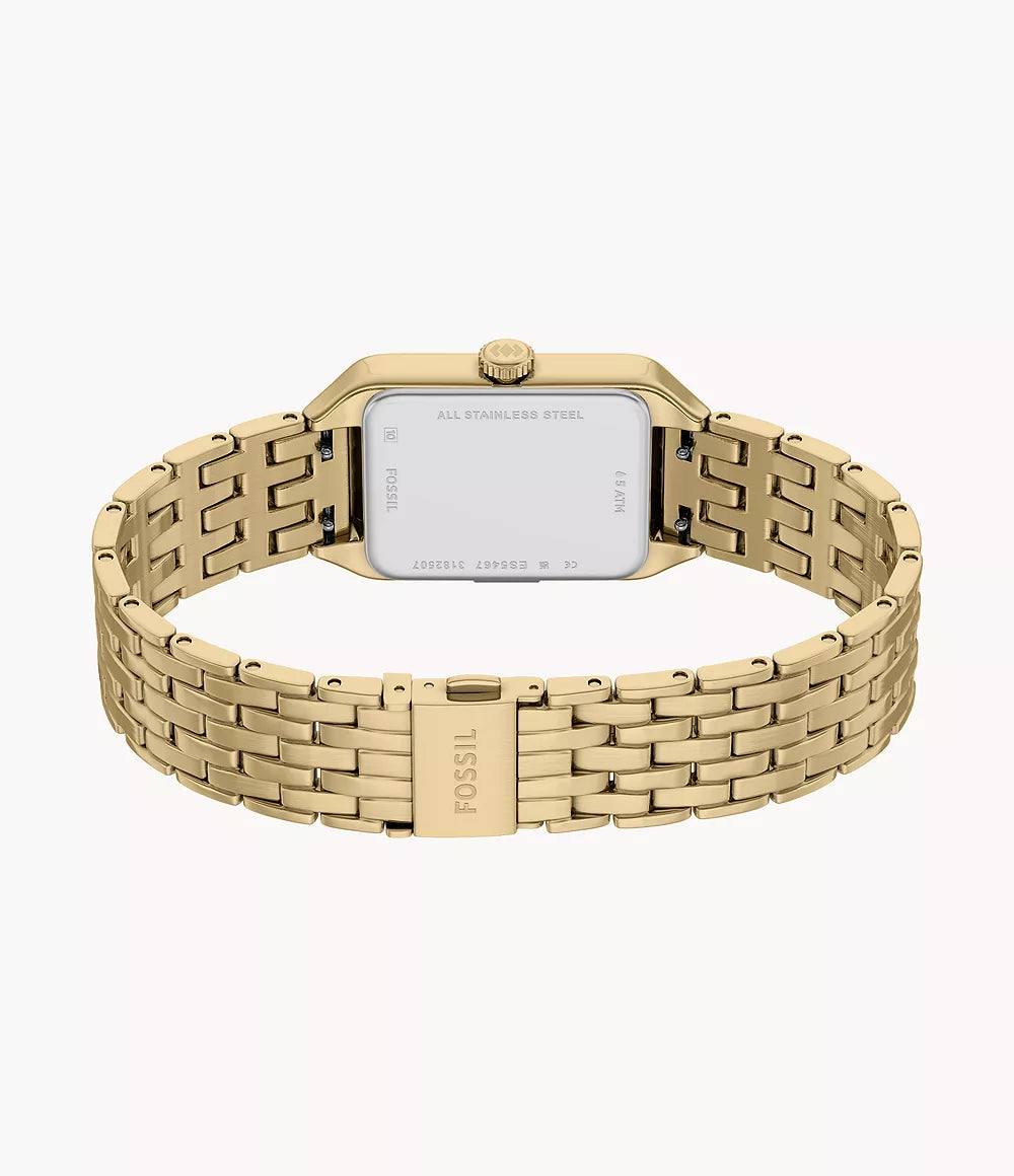 Fossil Raquel Mini vrn:ES5467 Gangverk:Rafhlaða/Quartz Stærð:18mm  Úrkassi:Gyllt stál Keðja/ól:Gyllt stál Skífa:Hvít Gler:Hert gler Vatnsvörn:50m Dagatal:Nei  Eiginleikar: Ábyrgð: Tveggja ára